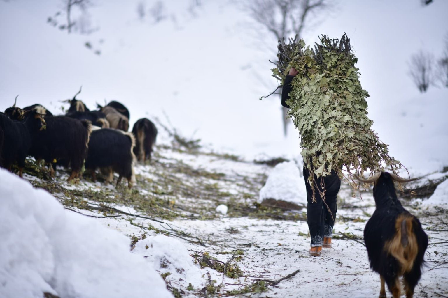 Keçilerin beslenmesinde babasına yardımcı olduğunu söyleyen Nurullah Azat Akar da, “Karabey köyünde yaşıyoruz, burada hayvancılık yapıyoruz. İşlerde babama yardımcı oluyorum. Günde iki kere yukarı çıkıp meşe yaprağı getiriyoruz. Topladığımız yaprakları aşağıya indirip hayvanlara veriyoruz. Yazın büyük yamaçlardan topladığımız yaprakları kışın kızaklarla yukarıdan aşağı taşıyoruz ve burada hayvanlarımıza yediriyoruz. Hayvanlarımızı bu yapraklarla besliyoruz. Günümüz genellikle bu işlerle geçiyor” ifadelerini kullandı.