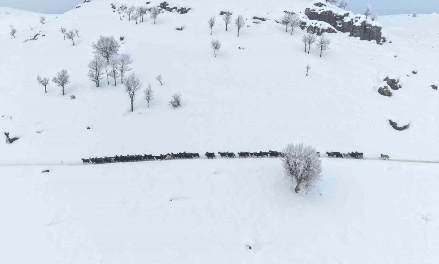 Muş’ta etkisini sürdüren yoğun kar yağışı ve dondurucu soğuklar, kırsalda yaşamı zorlaştırıyor. Merkeze yaklaşık 55 kilometre uzaklıktaki Karabey köyünde besicilikle geçimini sağlayan vatandaşlar, ağır kış şartlarına rağmen hayvanlarını beslemek için zorlu bir mücadele veriyor. Kar kalınlığının yer yer 3 metreyi bulduğu bölgede besiciler, yaz aylarında topladıkları meşe yapraklarını kış boyunca hayvan yemi olarak kullanıyor. Yaz aylarında traktörlerin giremediği sarp arazilerde meşe yapraklarını toplayan, kışın da kızaklara yükleyen besiciler, yaklaşık 2 kilometrelik yolu yürüyerek kat ediyor.