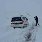 Yolda mahsur kalan vatandaşlardan Salih Arslan, “Yollar tipi ve fırtına nedeniyle kapalı. Yaklaşık bir saattir burada mahsur kalmış durumdayım. Yoğun kar nedeniyle yol izi tamamen kaybolmuş durumda” ifadelerini kullandı.