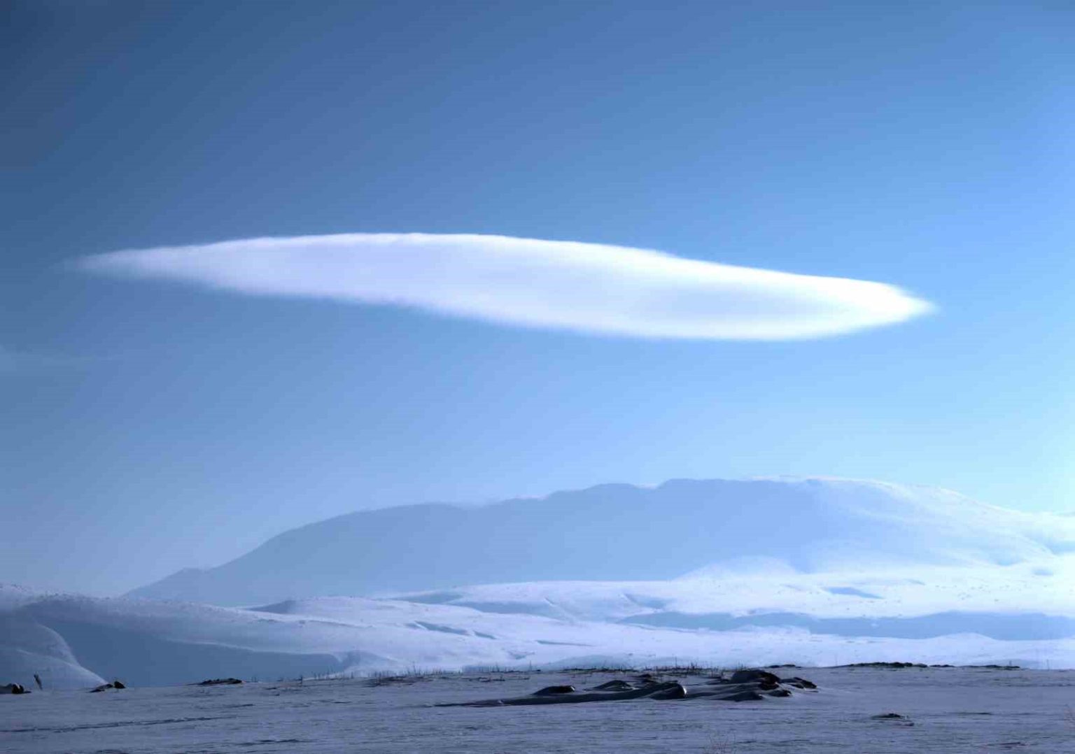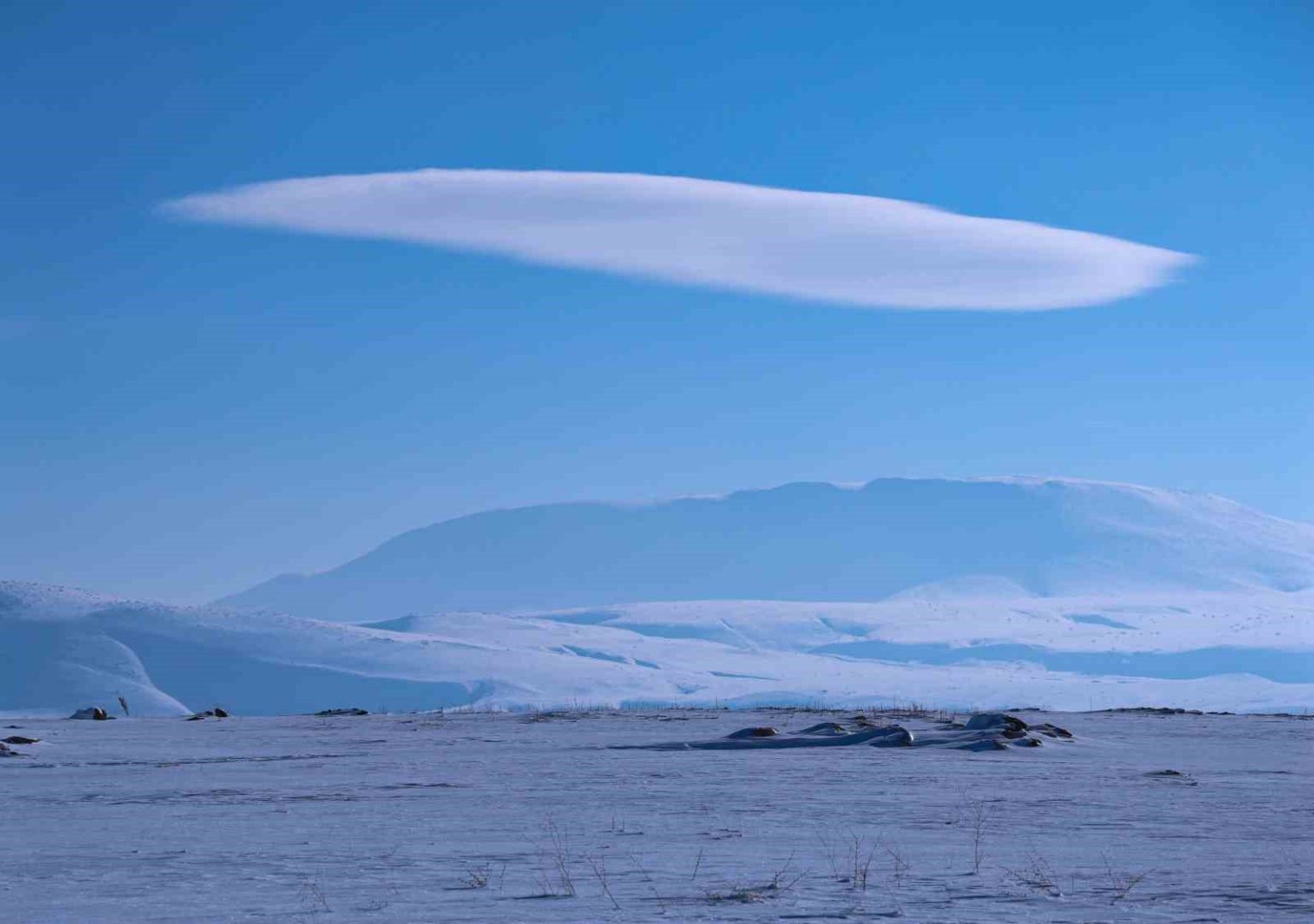 Bitlis’in Ahlat, Güroymak ve Tatvan ilçesi sınırlarında bulunan Nemrut Kalderası üzerinde oluşan mercek bulutu, düzgün ve uzamış yapısıyla gökyüzünde kartpostallık görüntüler oluşturdu.
