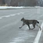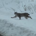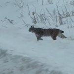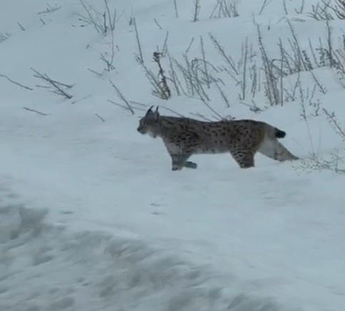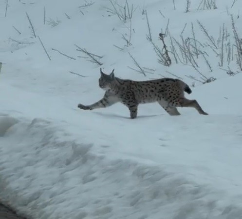 Karlı arazide görülen vaşak, yolun karşısına geçmeye çalıştığı sırada o güzergahtan aracıyla ilerleyen Vedat Özeler’in dikkatini çekti. Vaşağı cep telefonu kamerasıyla kayda alan Özeler’in görüntülerinde, iri cüsseli vaşağın yolun karşı tarafına geçtiği görülüyor.