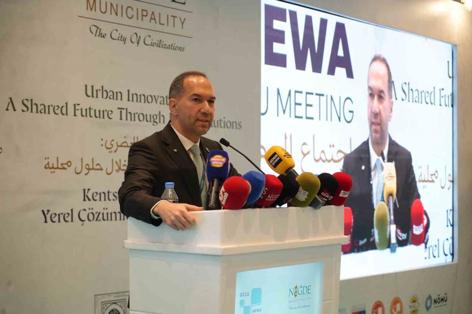 UCLG-MEWA 2026 Yönetim Kurulu Toplantısı, Niğde Belediyesi’nin ev sahipliğinde başladı. “Kentsel Yenilikçilik: Yerel Çözümlerle Ortak Gelecek” temasıyla düzenlenen ve 2 gün sürecek toplantıya 13 farklı ülkeden 71 kurumdan 119 yerel yönetici katıldı. Bölge ülkelerden belediye başkanları, yerel yönetim temsilcileri, uzmanlar ve uluslararası paydaşları bir araya getiren toplantının açılışında konuşan Niğde Valisi Nedim Akmeşe, organizasyonun önemine dikkat çekerek, “Yerel yöneticilerin temsil edildiği bu önemli yapının Orta Doğu ve Batı Asya bölgesini kapsayan toplantısının ilimizde gerçekleştiriliyor olması şehrimiz ve ülkemiz adına son derece anlamlıdır. Farklı ülkelerden belediye başkanlarını, yerel yönetim temsilcilerini ve uzmanları bir araya getiren bu çalışmanın kentsel yenilikçilik, iklim değişikliğine uyum, akıllı şehir uygulamaları ve yerel yönetimlerde iş birliği gibi alanlarda önemli katkılar sunacağına inanıyorum. Bu toplantının şehirlerimiz arasında bilgi ve tecrübe paylaşımını güçlendireceği ve kamu iş birliklerine zemin hazırlayacağına inanıyorum” dedi.