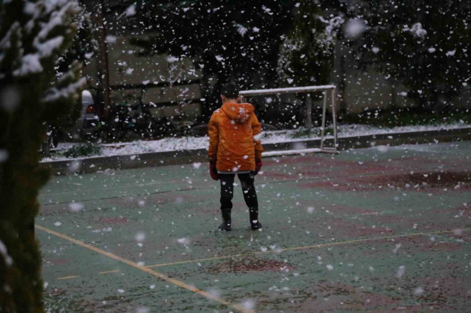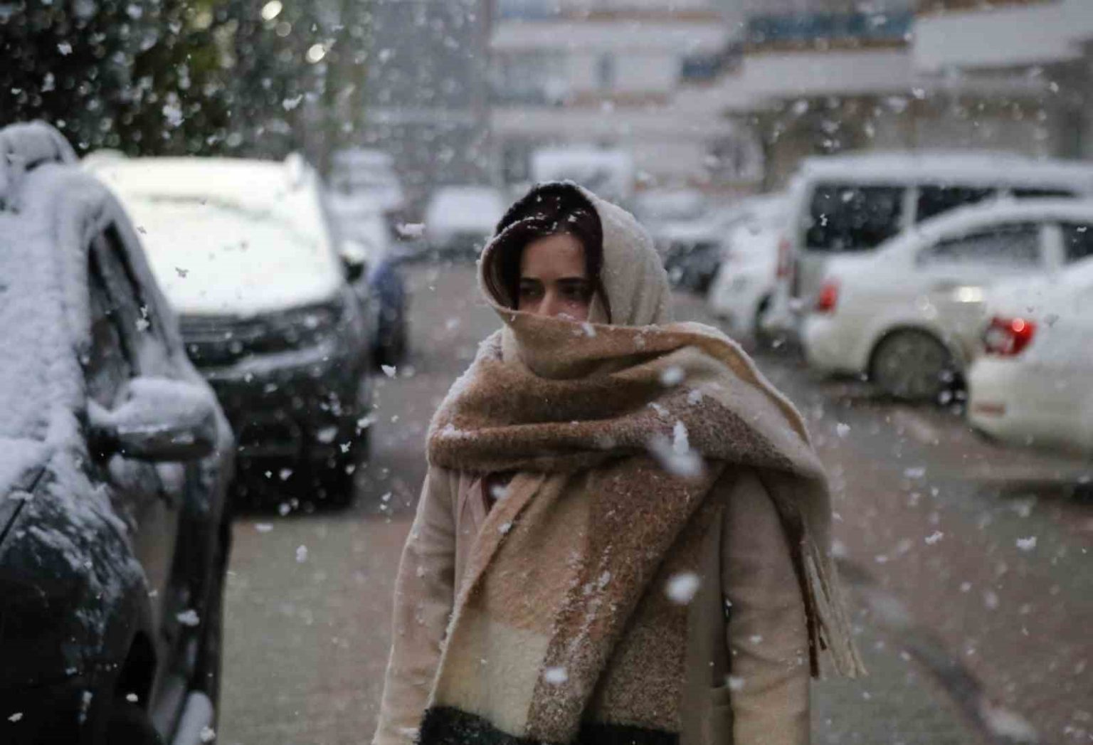 Kastamonu’da hava sıcaklığının düşmesinin ardından il merkezinde lapa lapa kar yağdı.