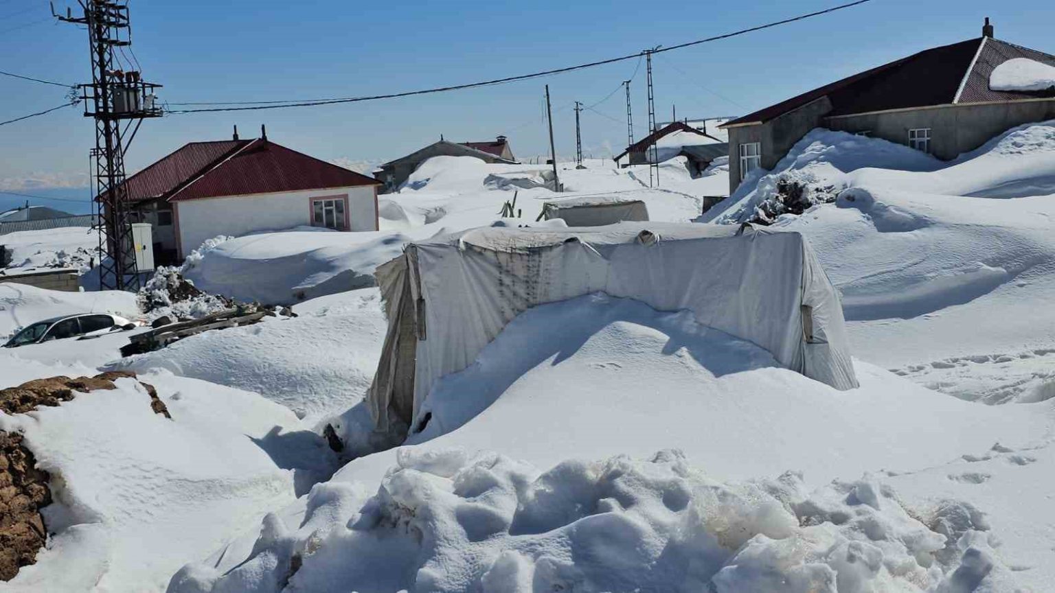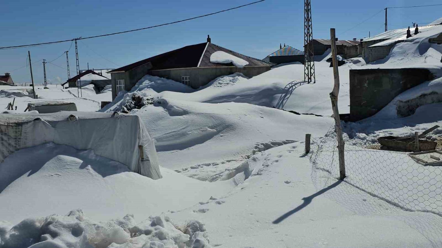 Bitlis’in Adilcevaz ilçesi Süphan Dağı eteğindeki Kışkılı Mahallesi, nisanda yer yer 3 metreyi bulan karla baharı bekliyor.