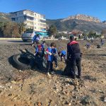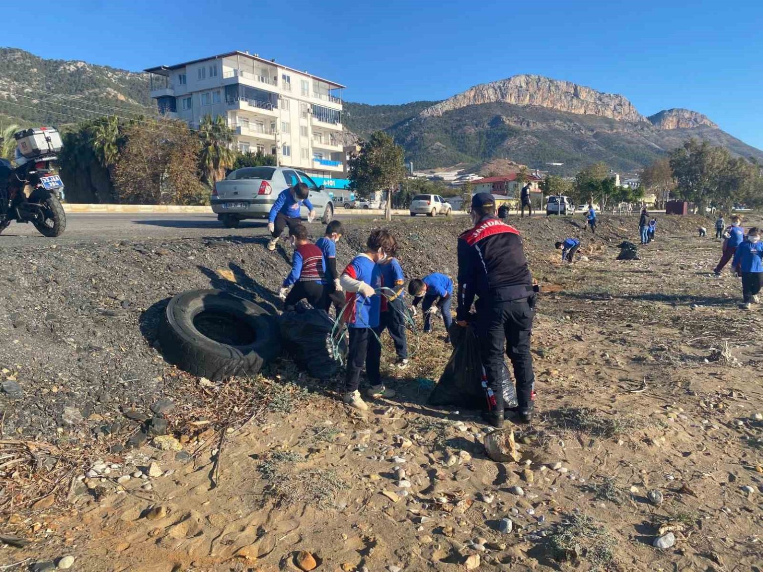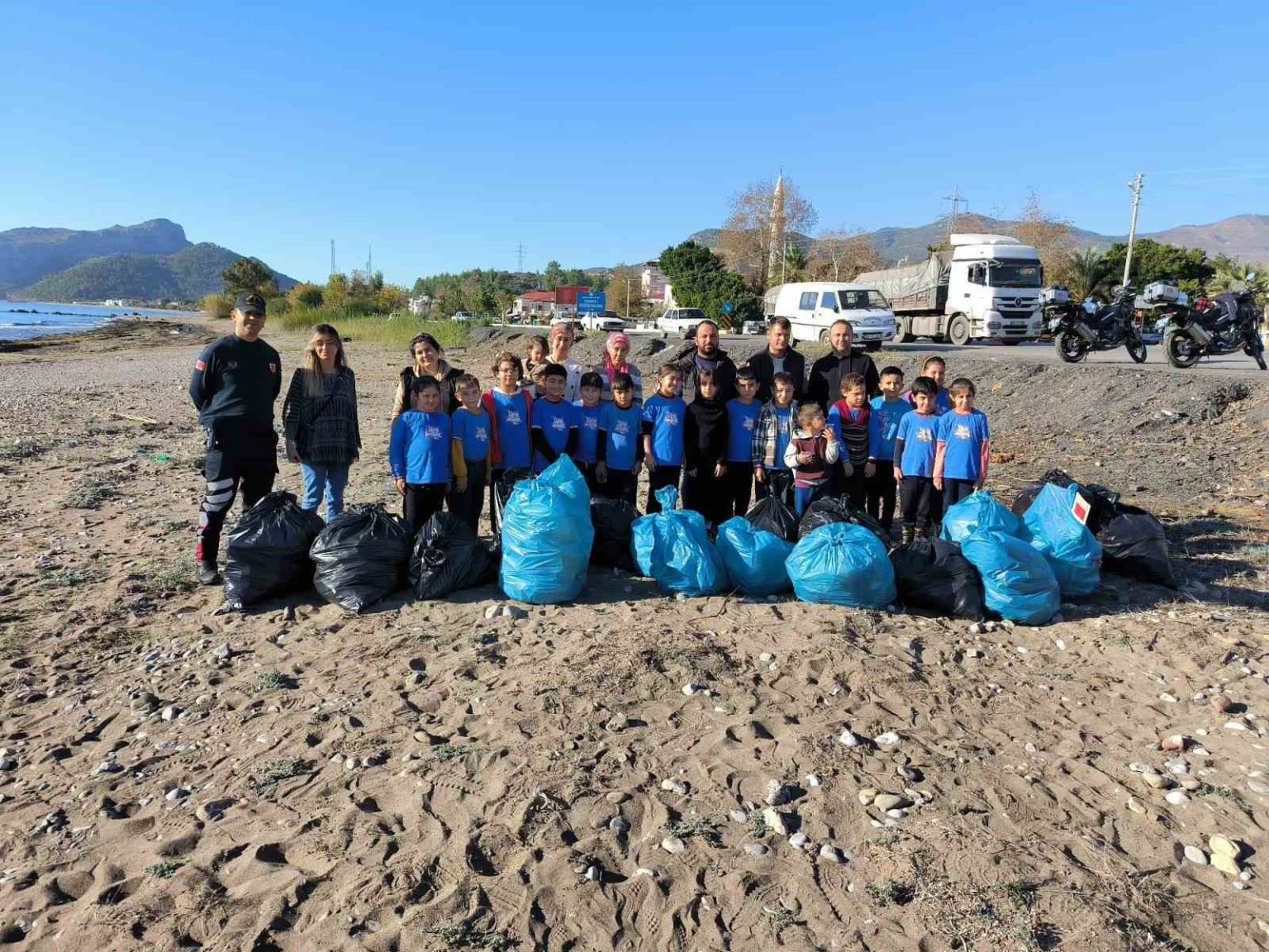 Mersin’in Bozyazı ilçesinde öğrenciler, öğretmenler, veliler ve jandarmanın katılımıyla sahil temizliği gerçekleştirdi.