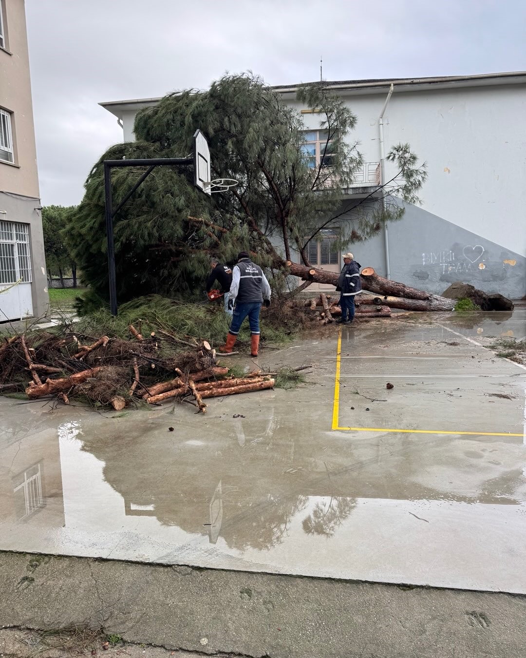 Aydın’ın Koçarlı ilçesine bağlı Bıyıklı Mahallesi’nde etkili olan şiddetli fırtına okul bahçesindeki yaklaşık 50 yıllık 5 çam ağacını kökünden söktü. Gece saatlerinde yaşanan olayda öğrencilerin okulda olmaması faciayı önlerken, sabah saatlerinde Koçarlı Belediyesi ekipleri devrilen ağaçları kaldırmak için çalışma başlattı.