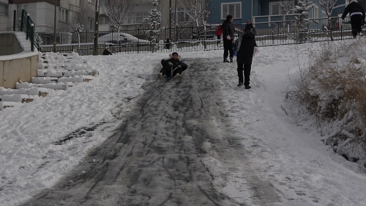Kar yağmasını beklemediklerini söyleyen Zeynep Yalçın ise, “Arkadaşlarımızla birlikte kayıyoruz, eğlenceli oluyor. Herkes sokaklarda oynuyor. Kardan adam yapıyoruz, güzel oluyor. Hava soğuk ama yine de eğleniyoruz. Okullarımız da tatil oldu, mutlu olduk” diye konuştu.