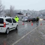 Kar lastiği ve zincir bulunmayan araçların tepeye çıkışına izin verilmedi