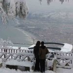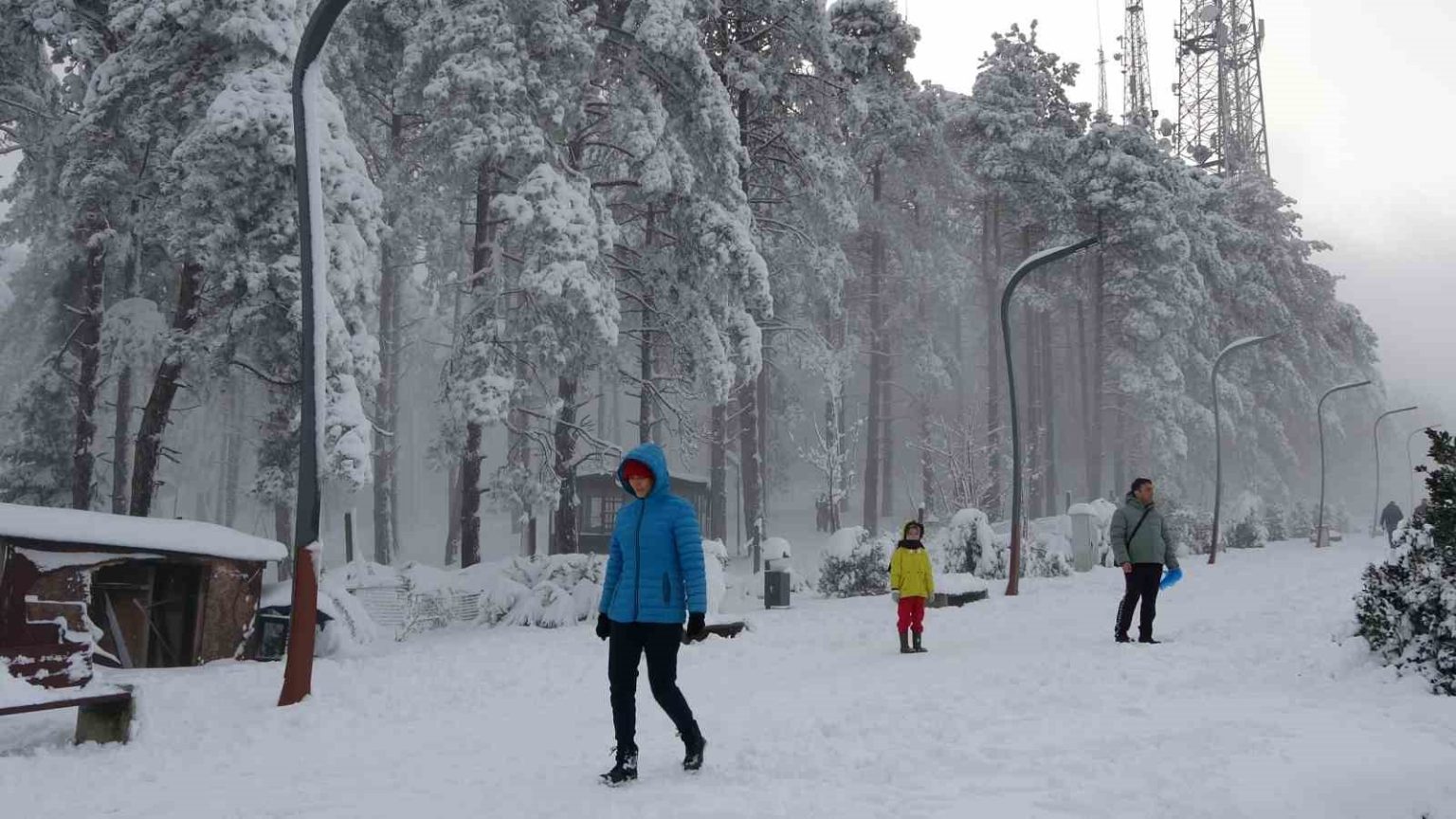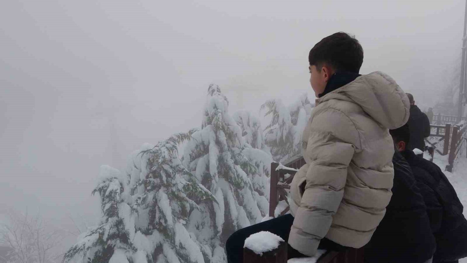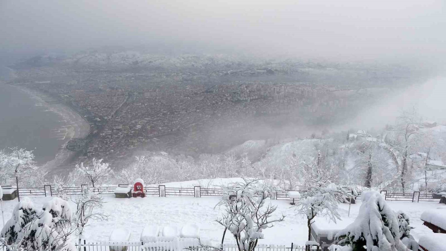 Ordu’nun ’seyir terası’ olarak adlandırılan ve denizden 530 metre yükseklikteki Boztepe, kar yağışı ile birlikte beyaz örtüyle kaplandı.