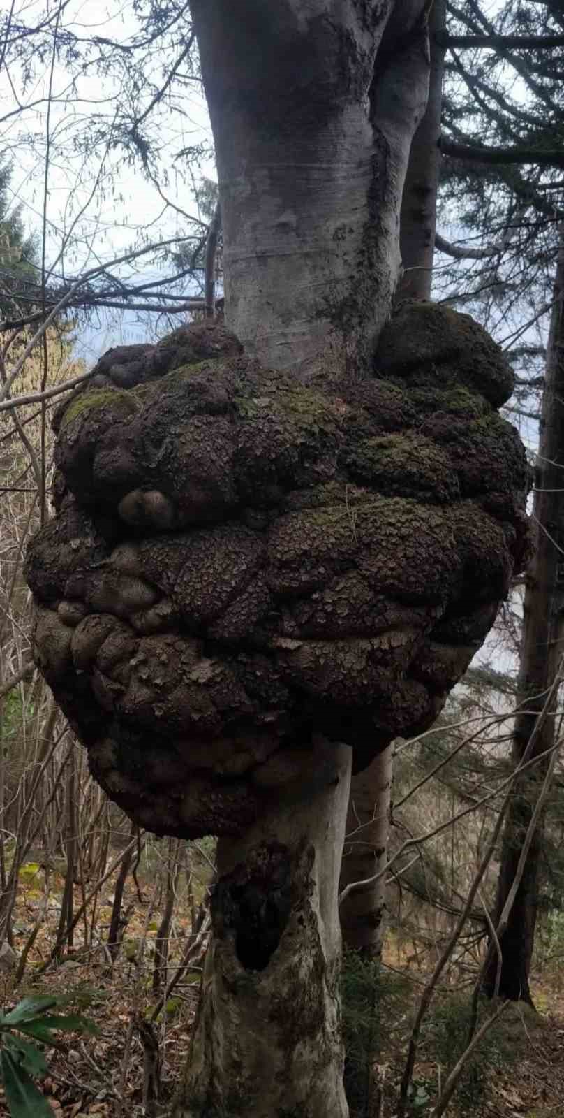 Ağacın bakteri, mantar veya fiziksel yaralanmalara karşı kendini korumak için hücrelerini kontrolsüzce büyütmesiyle oluşan bu kütle, Araklı’da bulunan bu örnekte devasa boyutlara ulaşmış durumda.