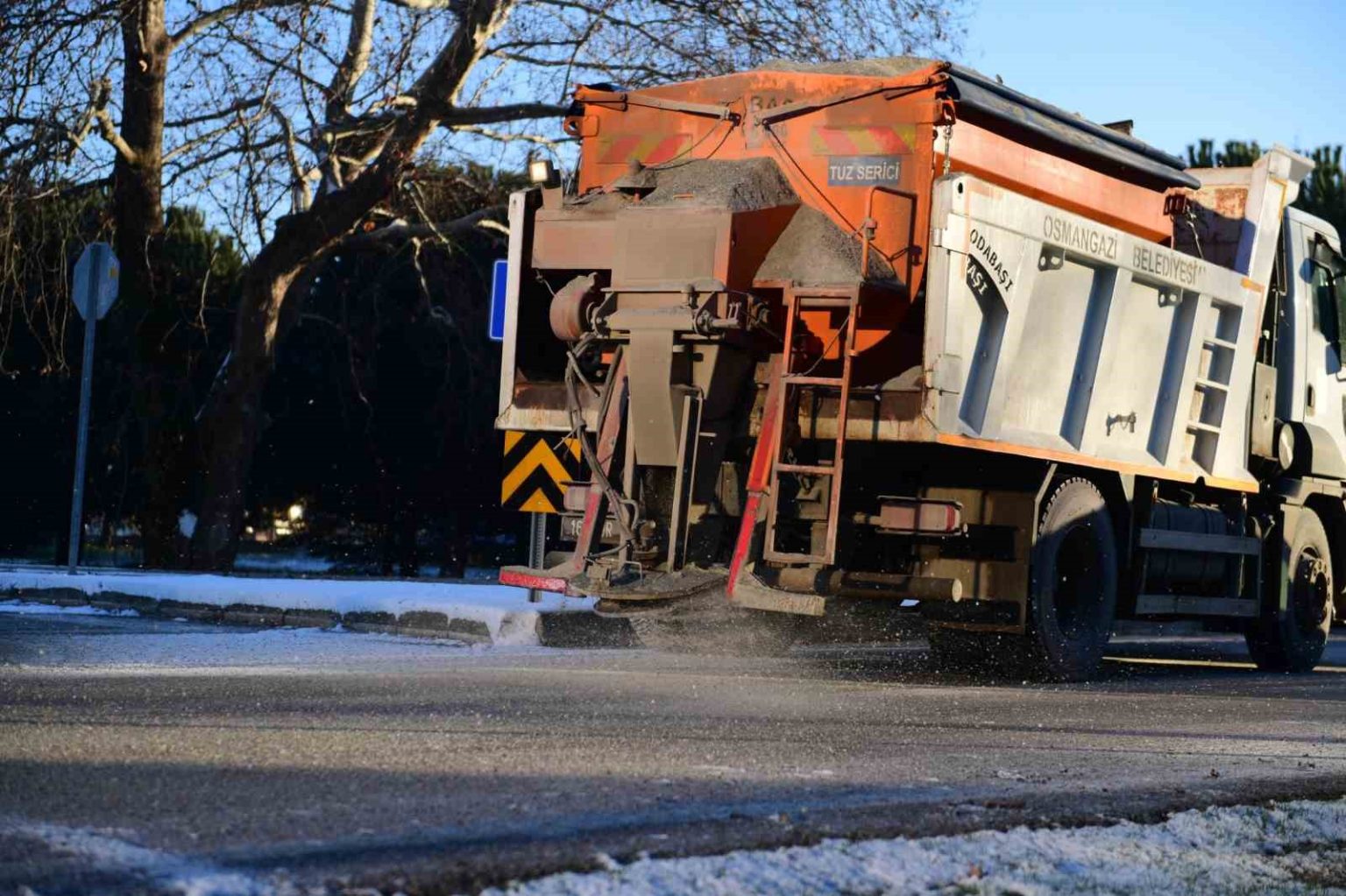 Yeni yılın ilk gününde etkili olan kar yağışıyla birlikte teyakkuzda olan Osmangazi Belediyesi ekipleri, yollardaki buzlanmaları önlemek amacıyla tuzlama çalışmaları gerçekleştirdi.