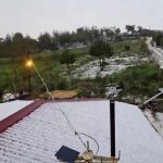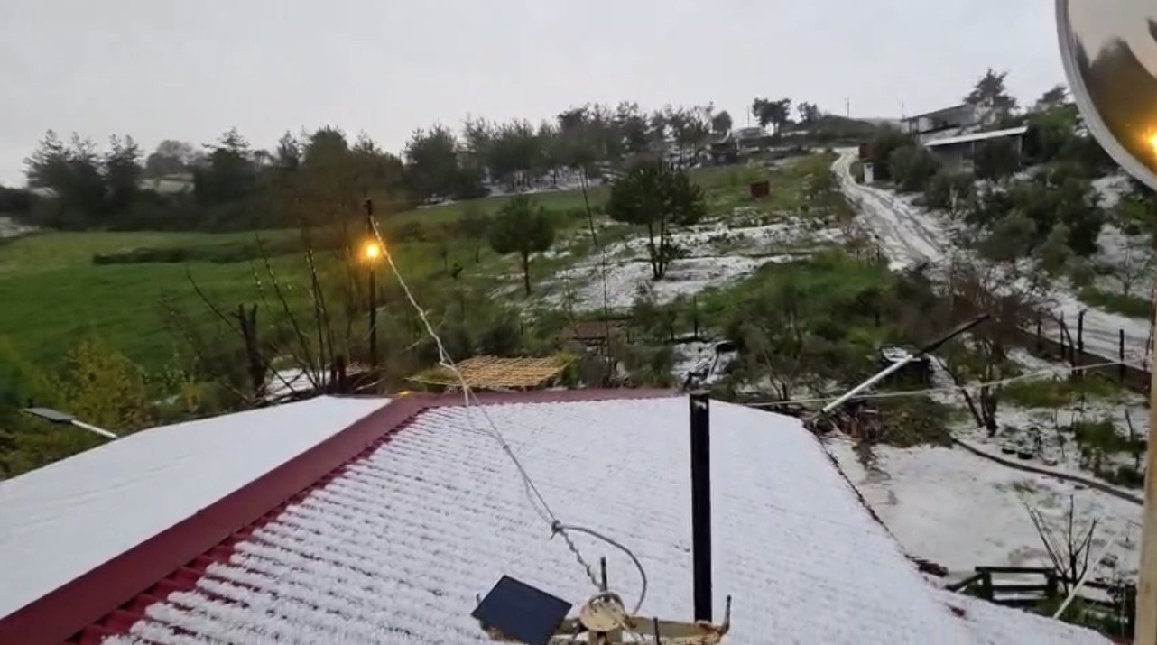 Osmaniye’nin Kadirli ilçesinde akşam saatlerinde etkili olan şiddetli yağmur ve dolu, çatıları beyaza bürüdü.