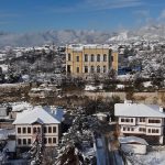 Karla kaplı tarihi yapılar dronla görüntülendi.