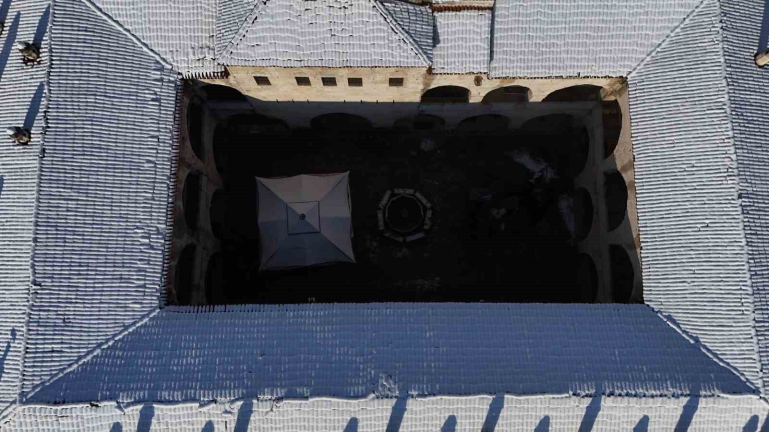 Karla kaplı tarihi yapılar dronla görüntülendi.