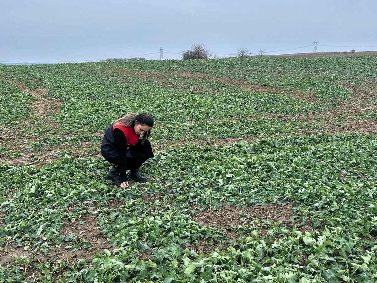 Kırklareli’nin Pehlivanköy ilçesinde çiftçinin anıza kanola ekimi yaptığı arazisinde bitkinin fizyolojik gelişimi, kök gelişimi ve toprak nem durumu yerinde incelendi.