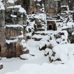 Perre Antik Kenti’nin kayalara oyulu mezar yapıları, tarihi taş yolları ve kalıntıları karla birlikte daha da dikkat çekici hale geldi.