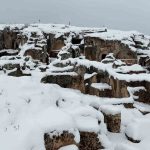 Antik kent çevresinde oluşan beyaz manzara, tarihle doğanın buluştuğu eşsiz bir görüntü oluşturdu.