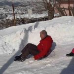 Poşetlerle kayarken sucuk mangala doydular