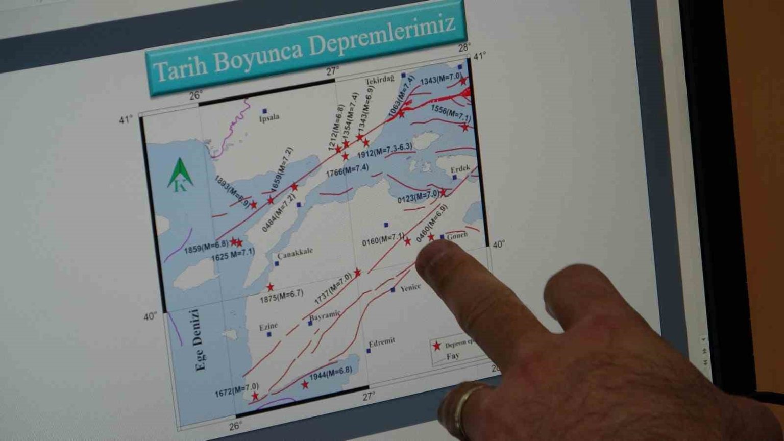 Biga’da farklı fay hatlarının bulduğunu ve bunların tarihte de yıkıcı depremleri çıkarttığını aktaran Bekler, “Biga özeline geldiğimizde ise, Biga hakikaten Anadolu’nun önemli tektonik unsurlarını barındıran, geçmişte de bu tektonik unsurların zararlı etkilerini, yıkıcı etkilerini karşımıza çıkartan bir bölge. 1912 Saros Körfezi Depremi, 1953 Yenice Gönen Depremi, 1944 Edremit Körfezi Depremi, bilinen önemli depremlerimizden bazıları. Yine Biga yarımadasında oluşmuş. Son olarak 2017’de Ayvacık’ta meydana gelen deprem 5.4 büyüklüğünde. 2019’da 5.3 büyüklüğünde Ahmetçe’de meydana gelen deprem. Akabinde günümüze değin olan süreç içerisinde 2024, 2022, 2025’li yıllarda 4’ün üzerinde belirli süreçler içerisinde meydana gelen depremler var” ifadelerini kullandı.