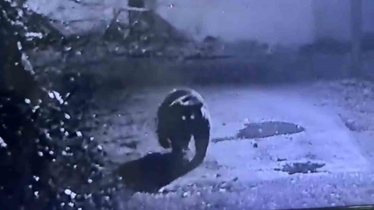 Rize’de vatandaşların yaşam alanlarına girerek insanları mağdur ettiği için av izni çıkartılan ayı, avcıların bölgeden çekilmesiyle yeniden ortaya çıkarken, karnını doyurmak için çıktığı yolculuk güvenlik kamerasına yakalandı.
