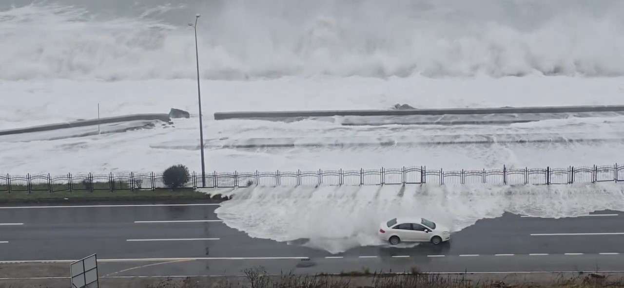 Rize’nin Çayeli ilçesine bağlı Yaka Mahallesi’nde Karadeniz sahil yolunda fırtına etkili oldu. Şiddetli rüzgar ve dalga nedeniyle yola ulaşan deniz suyu, bazı bölümlerin sular altında kalmasına yol açtı. Dalgaların yol seviyesini aşması nedeniyle sürücüler zor anlar yaşarken, bölgede trafik akışında aksamalar meydana geldi. Aynı bölgede bulunan sosyal yaşam alanı da dalgalardan nasibini aldı.