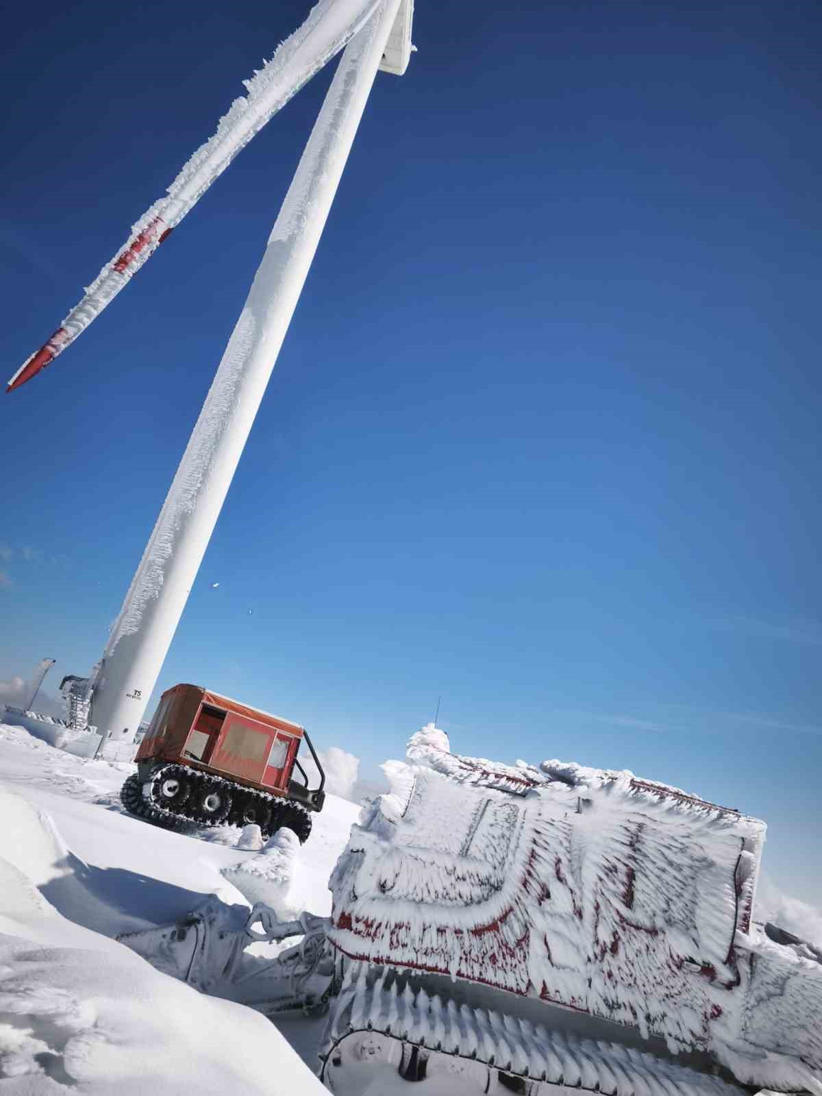 Rüzgâr türbinlerine ulaşmak için karla kaplı yollarda adeta tünel açtılar