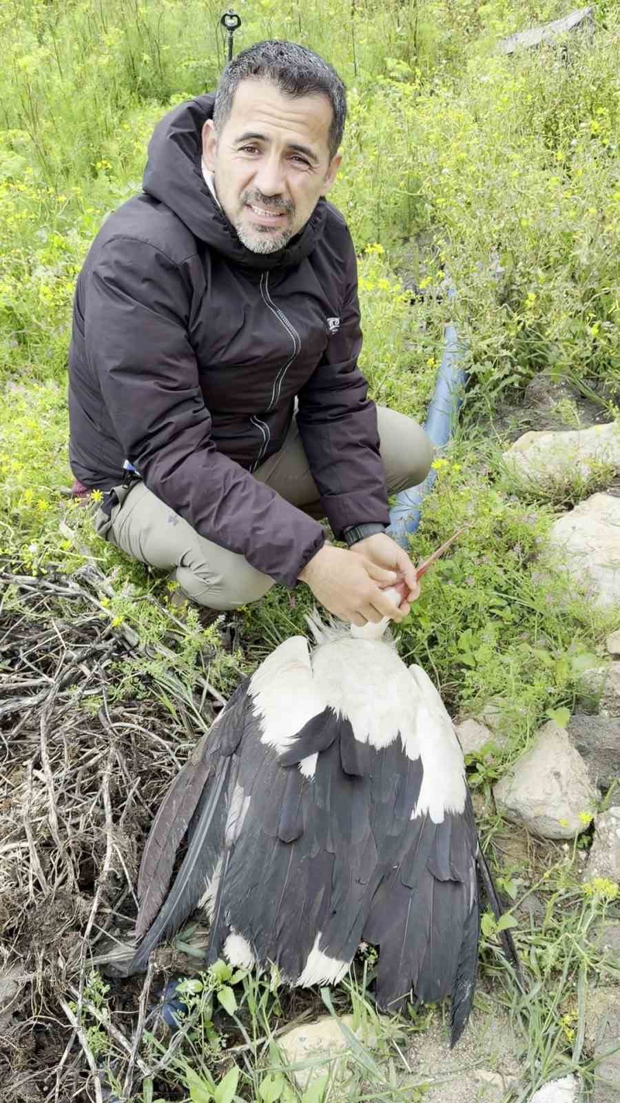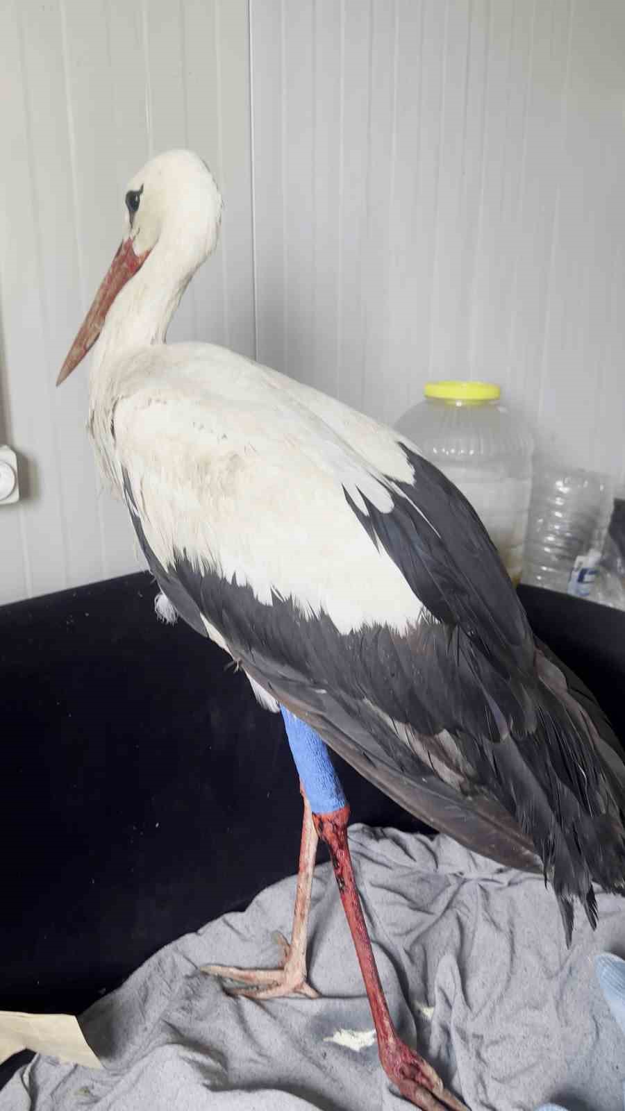 Saçmaların hedefi olan leyleğe kuş gözlemcisinden ilk yardım