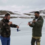 Baraj gölüne balık tutmanın yanında doğanın ve manzaranın keyfini çıkarmak için geldiklerini ifade eden Soner Bayram, “Boş zamanlarımızda arkadaşımla birlikte buraya gelip balık tutmaya çalışıyoruz. Balık tutmak bizim için bir keyif, bir tutku. Aynı zamanda huzur veriyor. Adrenalin sevenleri de buraya davet edebilirim. Biraz korkutucu olabilir ama bizim için vazgeçilmez bir tutku, bundan kopamıyoruz. Hava soğuk, buz kalınlığı yaklaşık 20 santimetre. Nasibimizi bekliyoruz. Balıkçılık gerçekten bir tutku işi. Burası yaklaşık bir ay önce buz tuttu ve bir ay kadar daha böyle devam eder. Sonrasında buzlar çözülmeye başlar. Biz yaz kış buraya geliyoruz. Kışın burada oturup çayımızı demliyor, keyif yapıyoruz. Yazın da ayrı bir güzelliği oluyor. Nasibimiz olursa balığımızı tutup gidiyoruz. Bu bizi mutlu ediyor. Aslında buraya sadece balık için değil, huzur ve keyif için geliyoruz. Biraz da heyecan arıyoruz. Düşme korkusu, balık tutup tutamama ihtimali. Ama hepsinden önemlisi buranın doğası ve manzarası bizi cezbediyor” dedi.