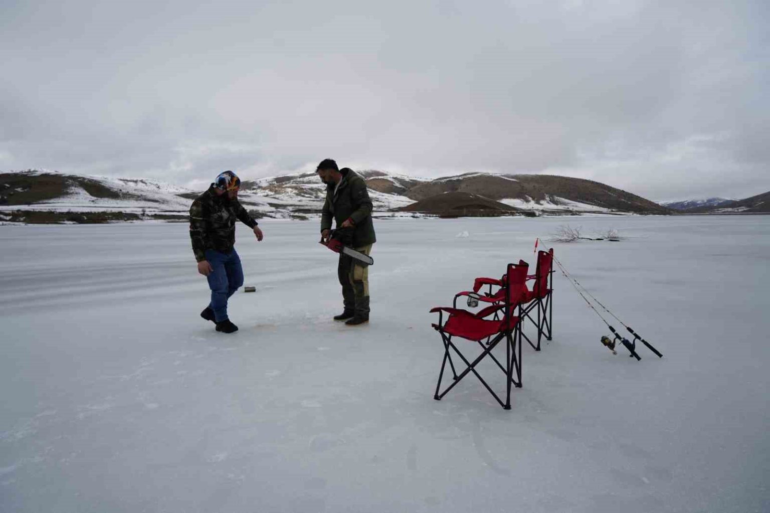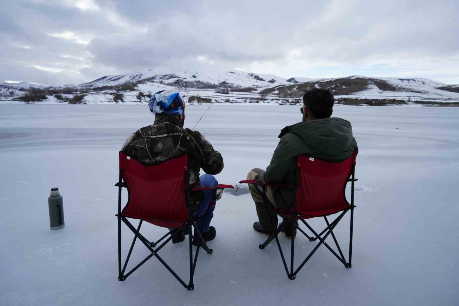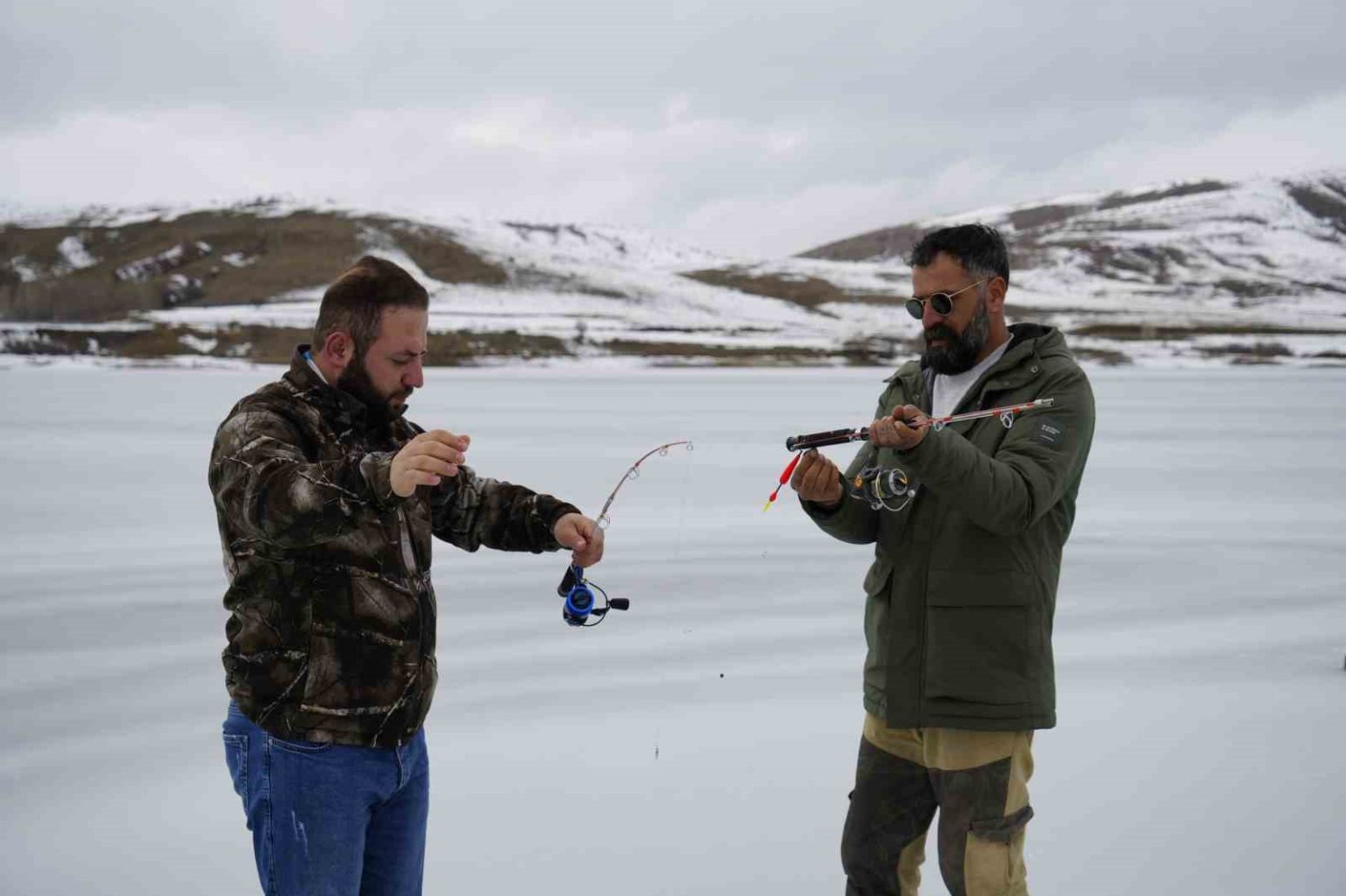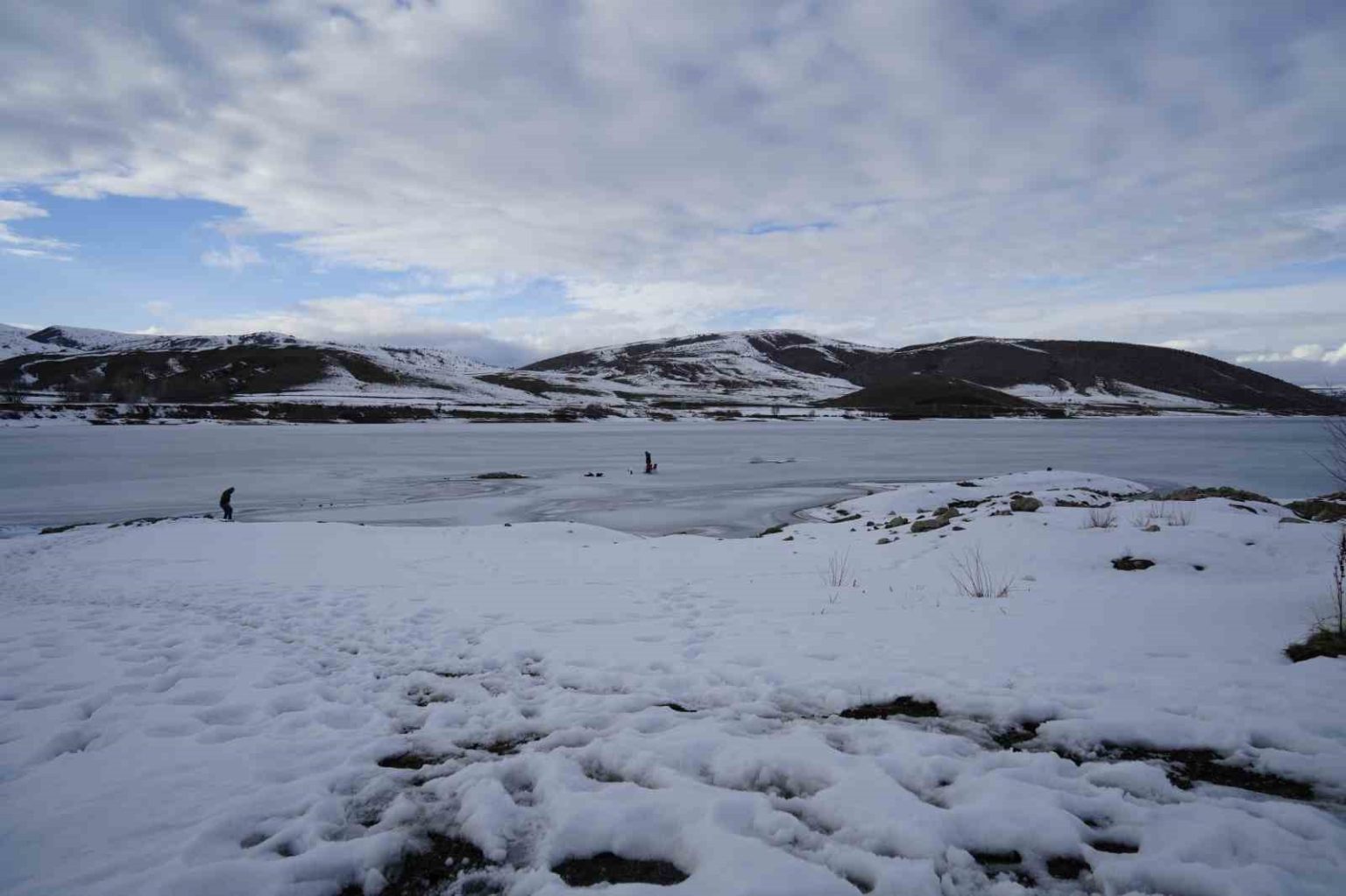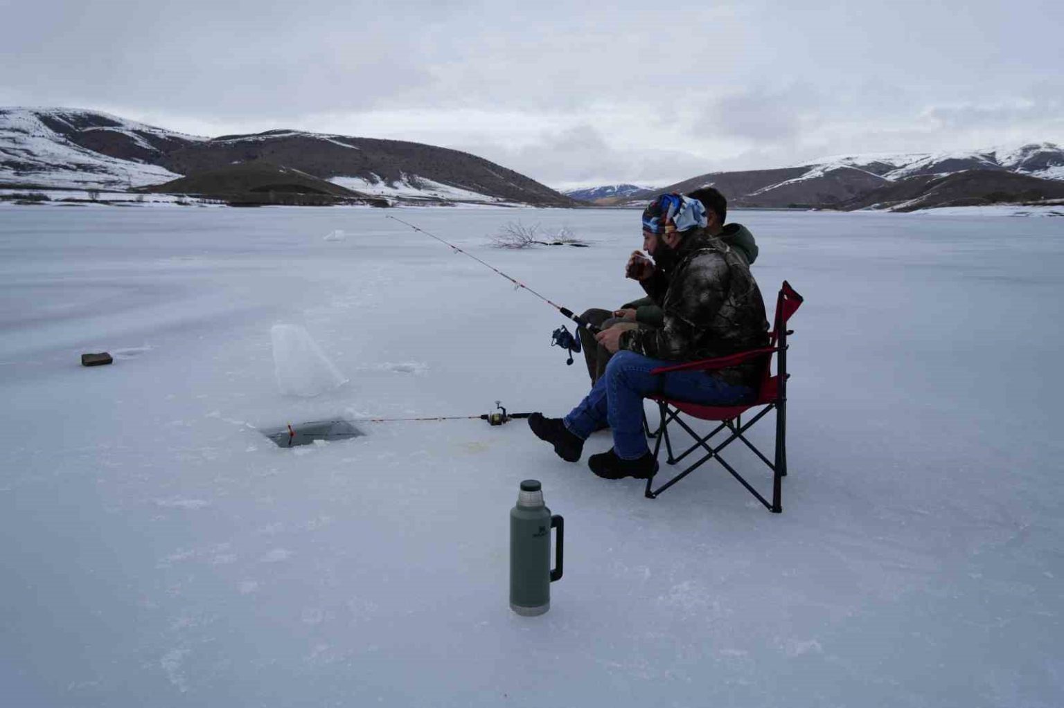 Baraj gölüne balık tutmanın yanında doğanın ve manzaranın keyfini çıkarmak için geldiklerini ifade eden Soner Bayram, “Boş zamanlarımızda arkadaşımla birlikte buraya gelip balık tutmaya çalışıyoruz. Balık tutmak bizim için bir keyif, bir tutku. Aynı zamanda huzur veriyor. Adrenalin sevenleri de buraya davet edebilirim. Biraz korkutucu olabilir ama bizim için vazgeçilmez bir tutku, bundan kopamıyoruz. Hava soğuk, buz kalınlığı yaklaşık 20 santimetre. Nasibimizi bekliyoruz. Balıkçılık gerçekten bir tutku işi. Burası yaklaşık bir ay önce buz tuttu ve bir ay kadar daha böyle devam eder. Sonrasında buzlar çözülmeye başlar. Biz yaz kış buraya geliyoruz. Kışın burada oturup çayımızı demliyor, keyif yapıyoruz. Yazın da ayrı bir güzelliği oluyor. Nasibimiz olursa balığımızı tutup gidiyoruz. Bu bizi mutlu ediyor. Aslında buraya sadece balık için değil, huzur ve keyif için geliyoruz. Biraz da heyecan arıyoruz. Düşme korkusu, balık tutup tutamama ihtimali. Ama hepsinden önemlisi buranın doğası ve manzarası bizi cezbediyor” dedi.