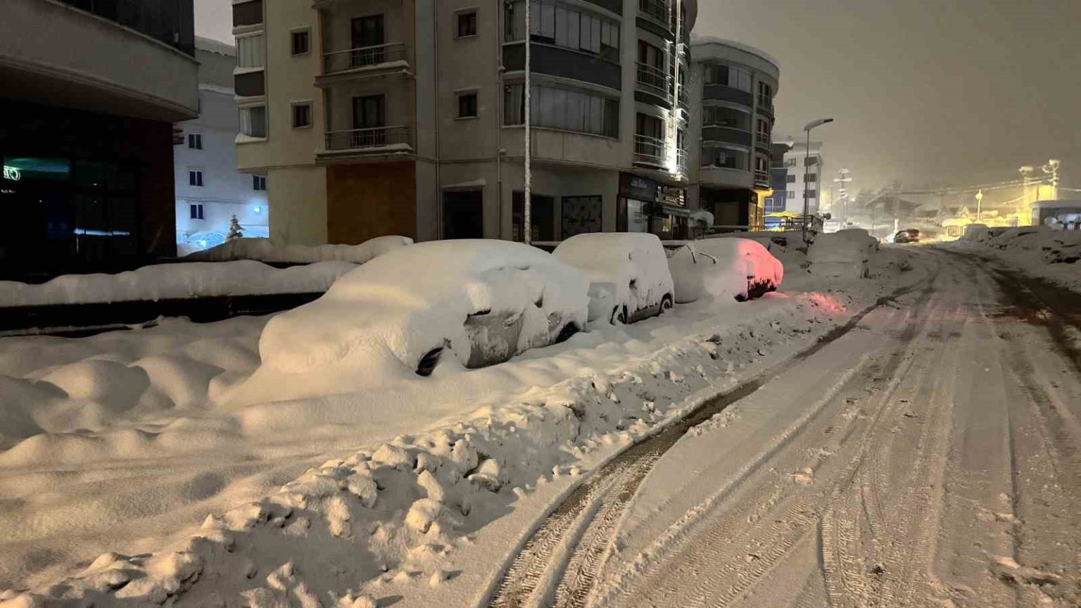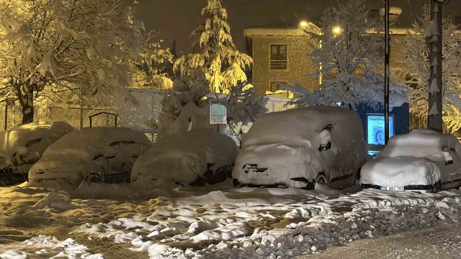 Karabük’ün Safranbolu ilçesinde yoğun bir şekilde devam eden kar yağışıyla, araçlar tamamen karla kaplanarak görünmez hale geldi.