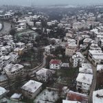 Tarihi Çarşı bölgesinde etkili olan kar yağışı ve oluşan manzara dronla görüntülendi.