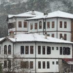 Safranbolu’da kar yağışı tarihi yapıların çatılarını beyaza bürüdü