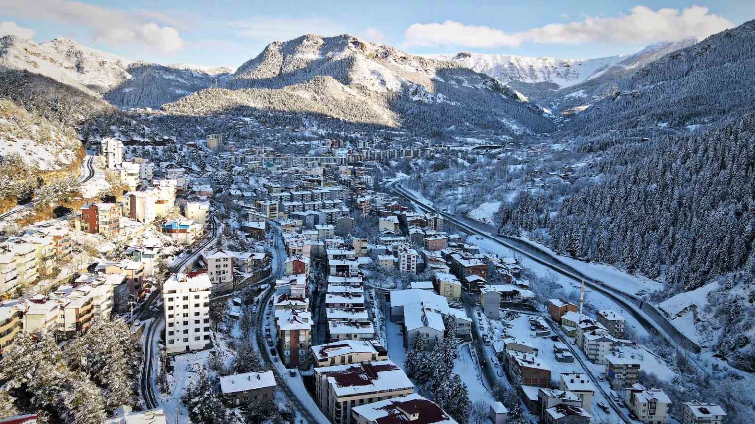 Karla kaplanan evlerin çatıları, yollar, yaylalar ve ormanlık alanlar dron kamerasıyla havadan görüntülendi. Beyaz örtünün doğayla bütünleştiği Şavşat’ta ortaya çıkan manzara, izleyenlere görsel bir şölen sundu. İlçenin sakin ve huzurlu yapısı, kış mevsiminde de kendini hissettirdi.