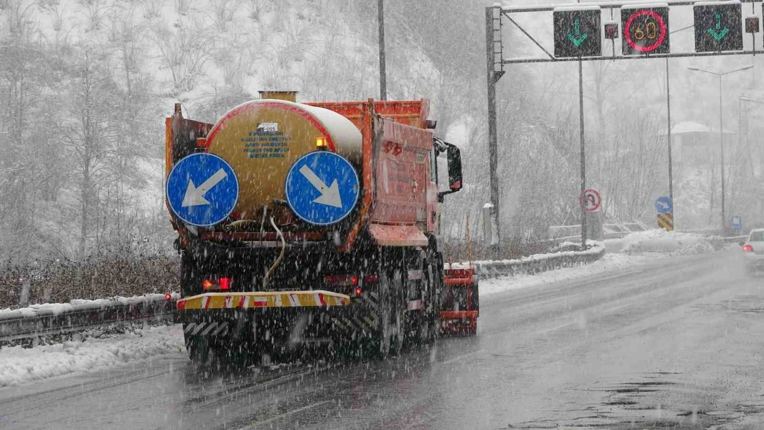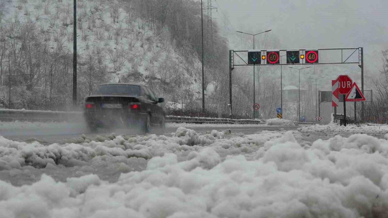 Samsun-Ordu karayolunda kar yağışı