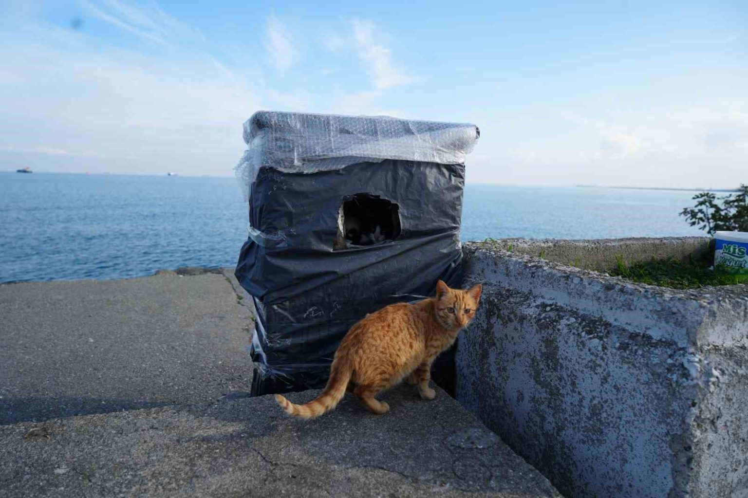 Samsun sahilinde kediler için sıcak yuva