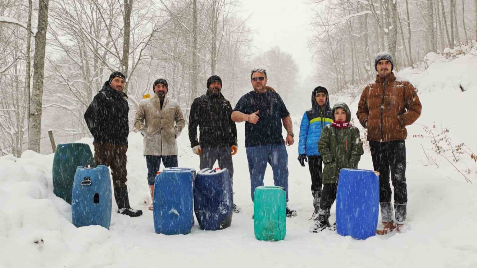 Samsun’da kar eğlencesi: Vatandaşlar bidonlarla karın keyfini çıkardı