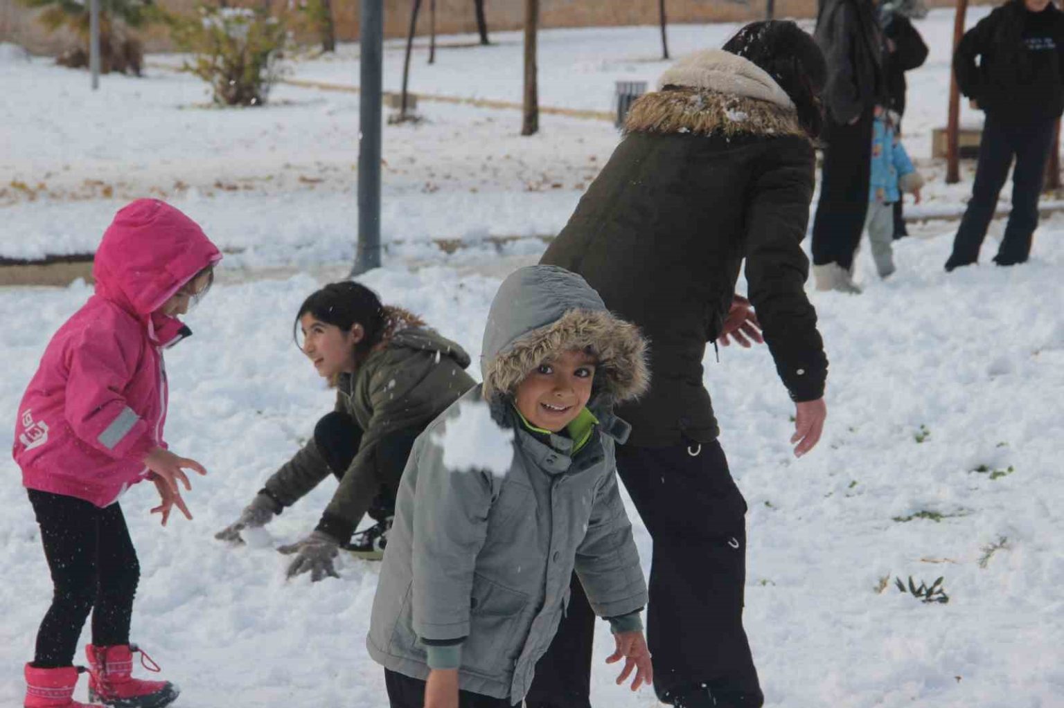 Şanlıurfa’da kar yağışı hem çocukların hem de yetişkinlerin yüzünü güldürdü. Çocuklar parklarda kartopu oynayarak keyfini çıkarırken, büyükler de halay çekerek doyasıya eğlendi.