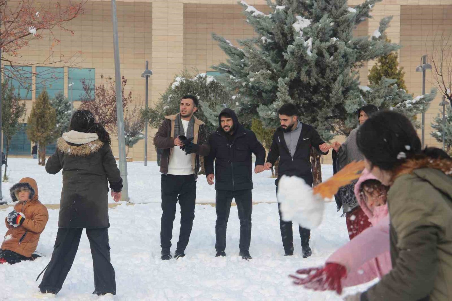 Şanlıurfa’ya kar yağması çocuklar kadar yetişkinleri de mutlu etti. Bir grup genç müzik eşliğinde kar üzerinde halay çekerek karın keyfini çıkardı. Kente yıllardır bu kadar çok karın yağmadığını söyleyen vatandaşlar da kartopu oynayıp, kardan adam yaptı. Park ve sokaklarda karla oynayan çocuk, genç ve yetişkinler renkli görüntüler oluşturdu. Okul tatilini parkta kartopu oynayarak çıkaran çocuklardan Hayrunnisa Bilgin, “Okulun tatil olması çok iyi oldu. Kardan adam yaptık, kartopu oynadık, çok mutlu olduk” dedi.