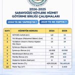 İlçe genelinde yürütülen çalışmalar kapsamında, köy yollarının iyileştirilmesi, içme suyu ve kanalizasyon altyapısının güçlendirilmesi ile yaşam alanlarının daha modern ve güvenli hale getirilmesi hedeflendi. 2025 yılı içerisinde Saraydüzü köylerinde toplam 11 kilometre KÖYDES asfalt çalışması yapılırken, 15 kilometrelik yol bakım ve altyapı çalışması gerçekleştirildi. Ayrıca 14 köyde yol onarım ve yama çalışmaları tamamlandı. Altyapı çalışmaları kapsamında 1 adet içme suyu deposu inşa edilirken, 19 bin 900 metre içme suyu hattı, 630 metre kanalizasyon hattı ve 612 metre menfez yapımı gerçekleştirildi. Köy içi düzenlemeler çerçevesinde ise 2 bin 400 metrekare parke taşı döşemesi yapıldı. Çalışmalara destek amacıyla köylere 12 kamyon malzeme sağlanırken, toplam 781 bin 600 TL nakdi destek aktarıldı.