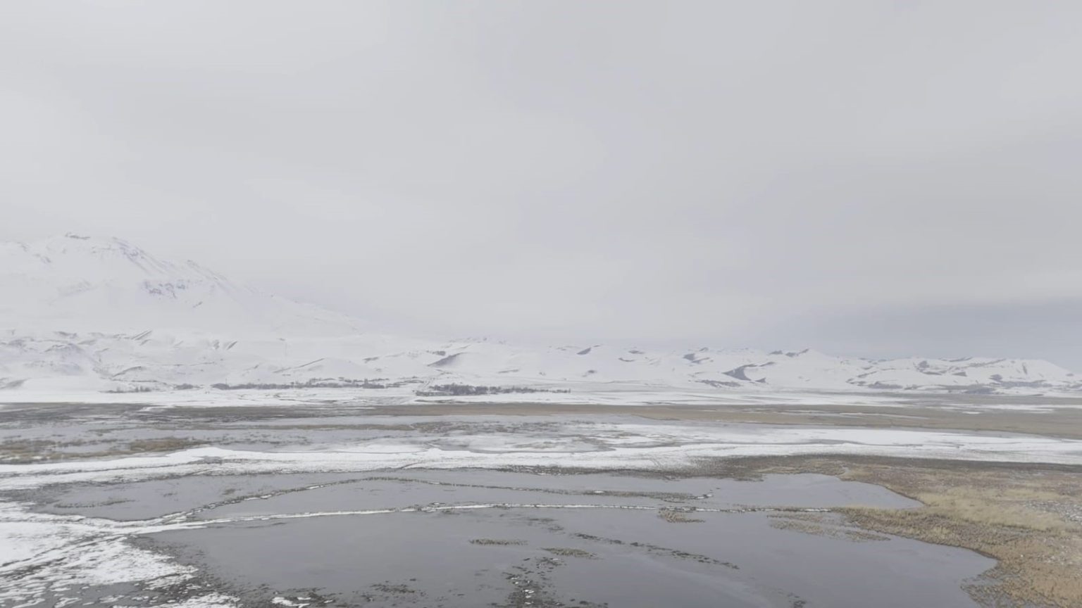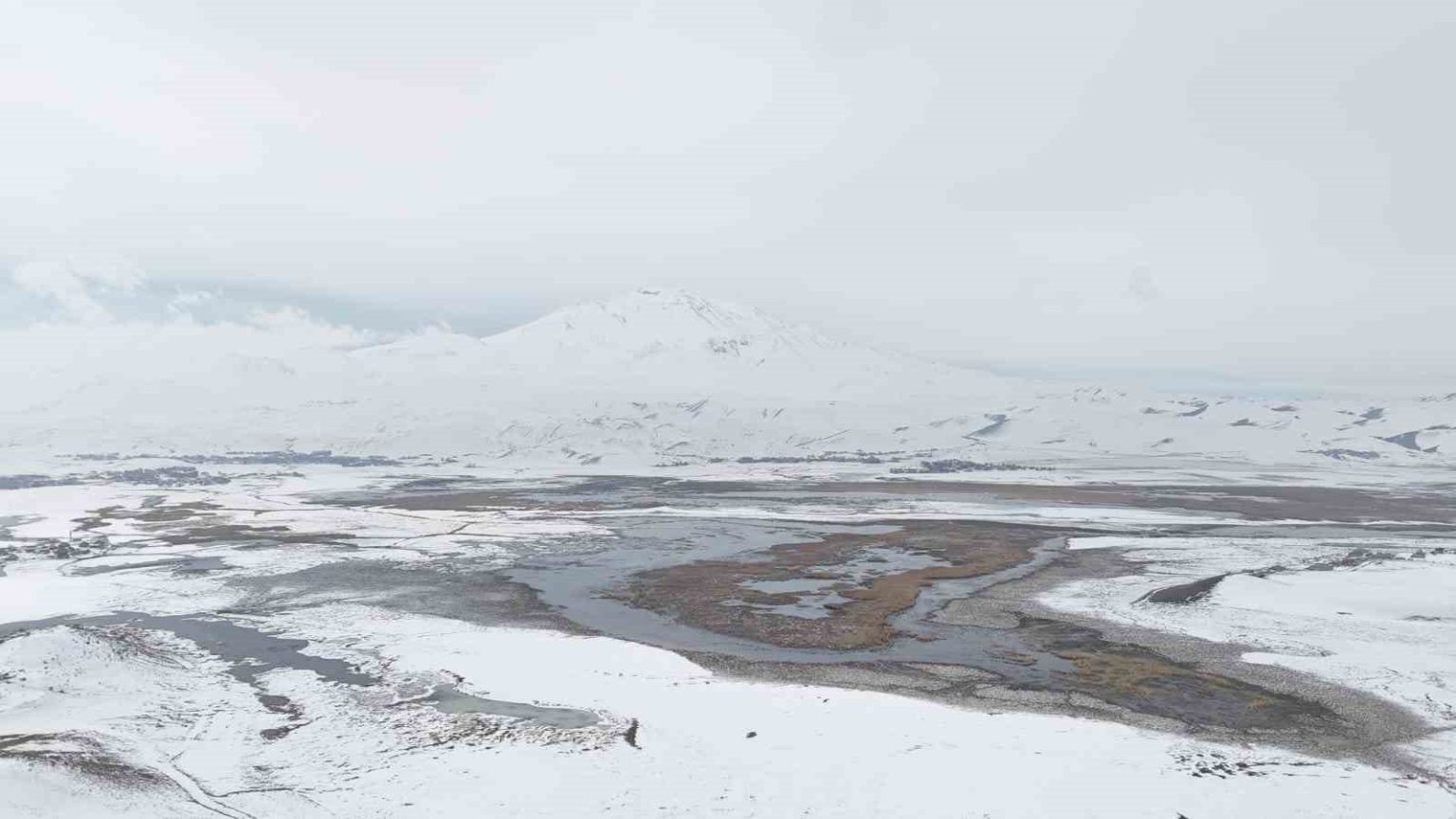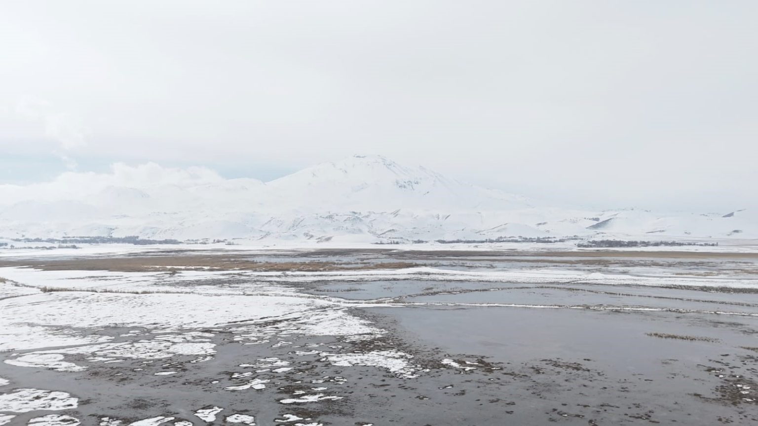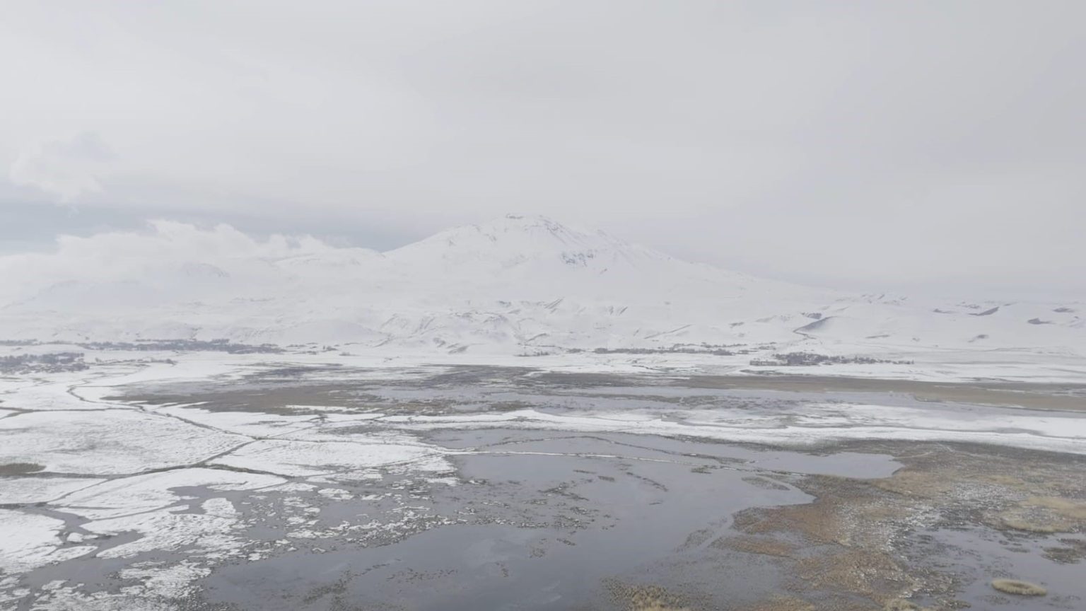 Bitlis’in Adilcevaz ilçesi ile Ağrı’nın Patnos ilçeleri arasında yer alan Sarısu sazlıkları, Süphan Dağı’nın karlı zirvesi göz kamaştırıyor.