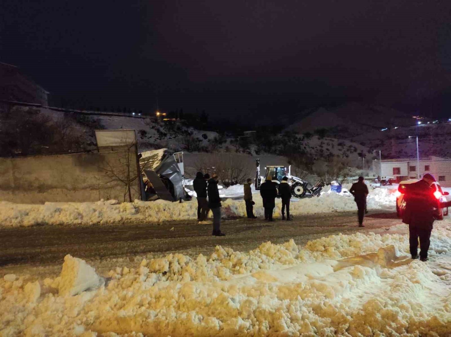 Sason’da yoğun kar yağışı nedeniyle iş yerinin çatısı çöktü
