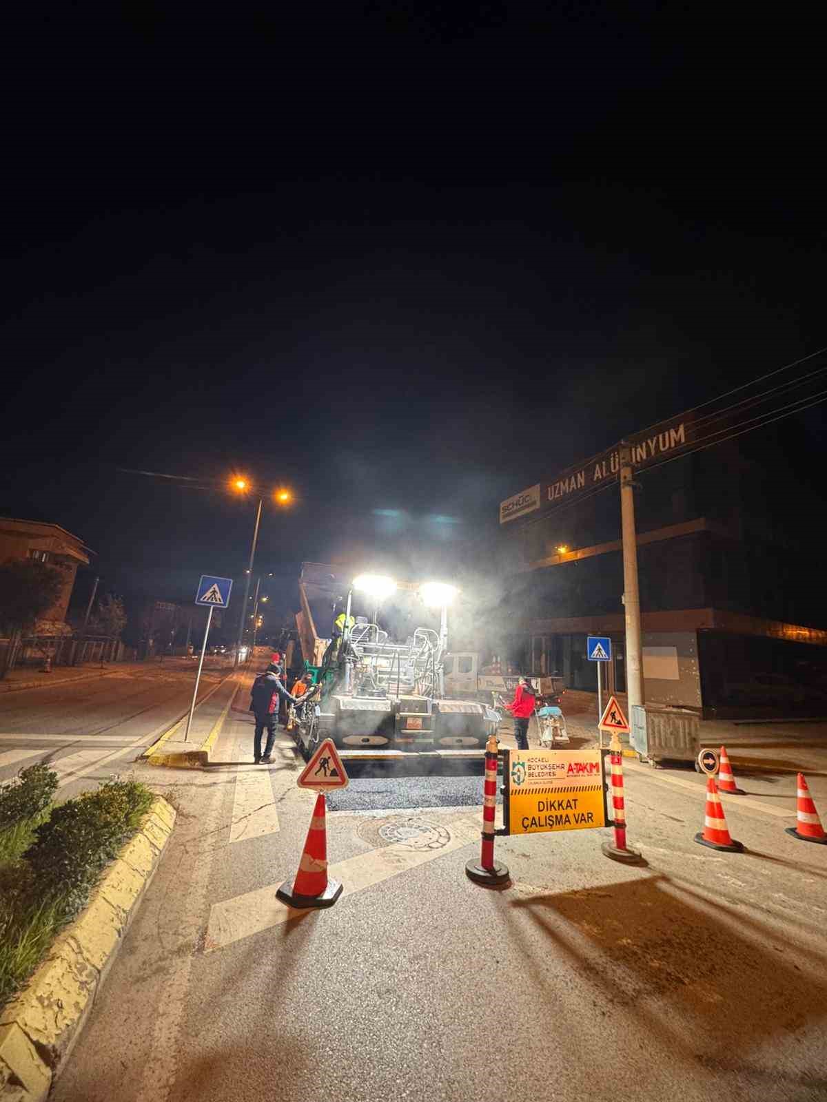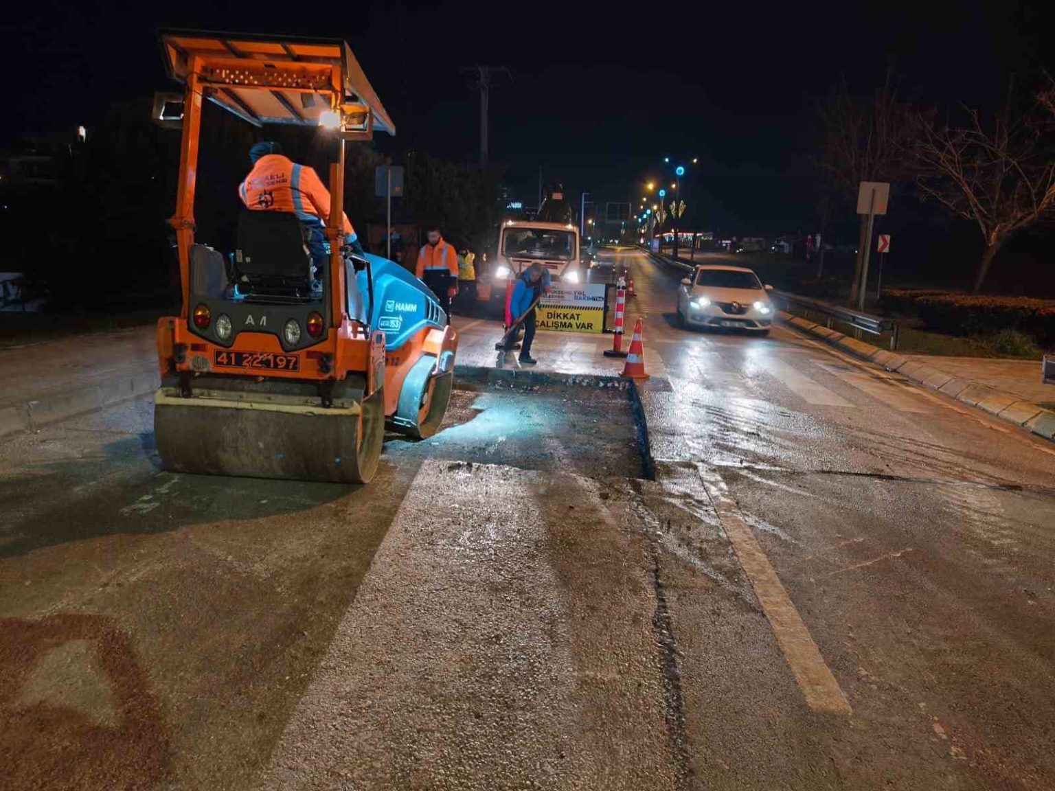 Kocaeli’de ekipler, trafik akışını olumsuz etkilememek amacıyla tüm şehir uykuda iken pek çok noktayı elden geçiriyor. Kentin farklı noktalarında tretuvar tamiratı, mazgal temizliği ve trafik güvenliği düzenlemeleri yapılıyor.