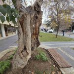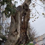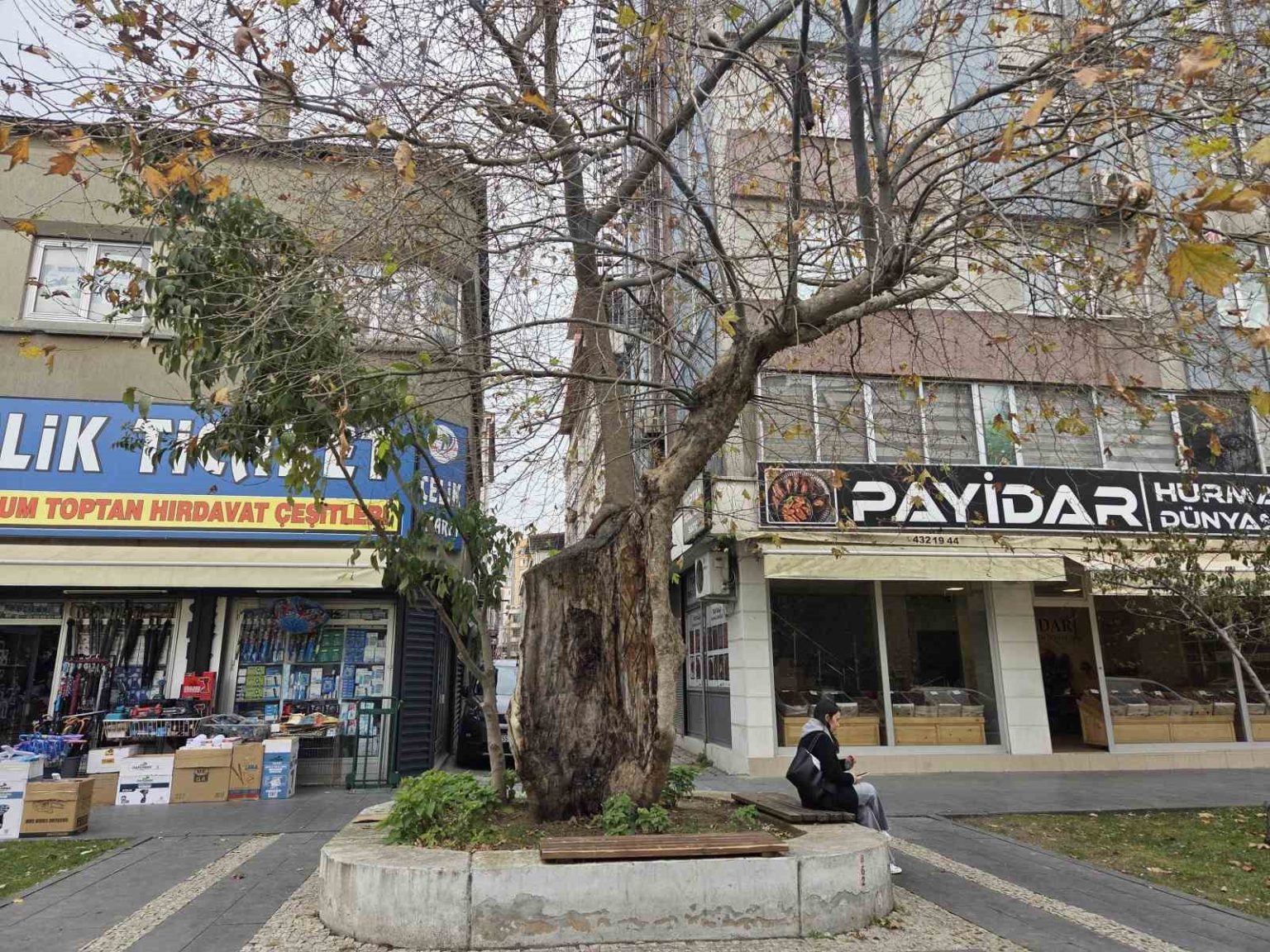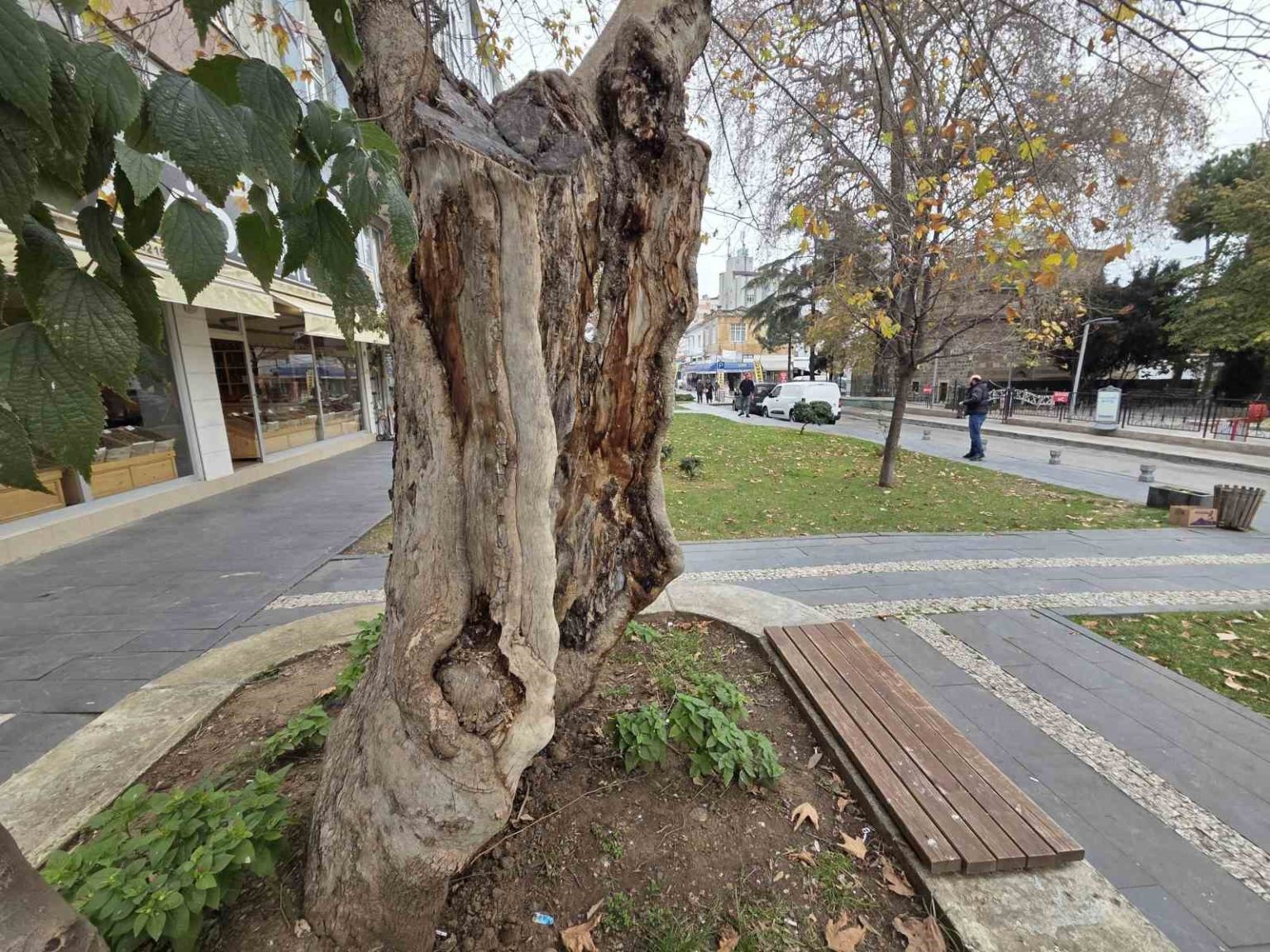 Şehirdeki 20 anıt ağaçtan biri olan çınar, gövdesi olmadan dış kabuğu üzerinde duruyor