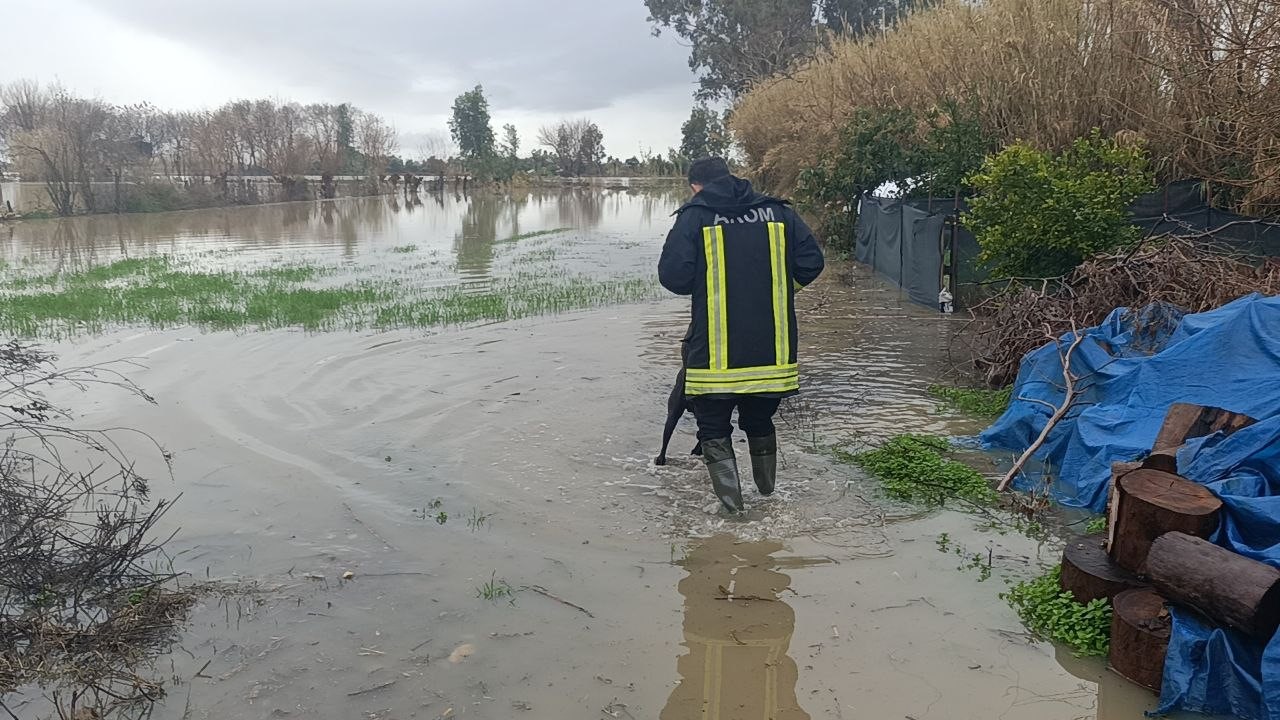 Adana’da sel sularının yükselmesiyle bir bahçede mahsur kalan köpeği AKOM ekipleri kurtardı.