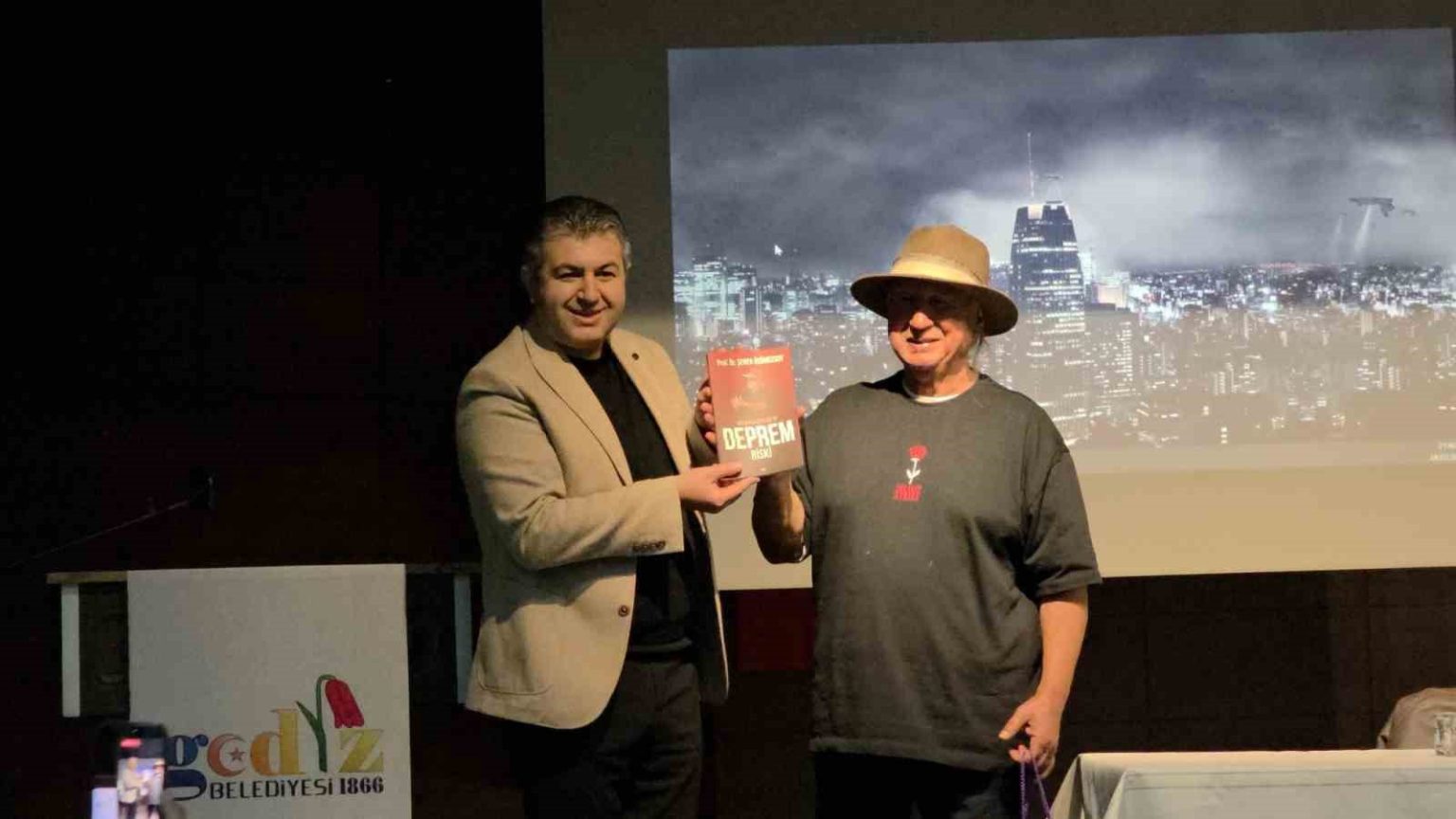 Konferans sonunda Gediz Belediye Başkanı Necdet Akel, programa katılan Üşümezsoy’a teşekkür ederek günün anısına hediye takdim etti.