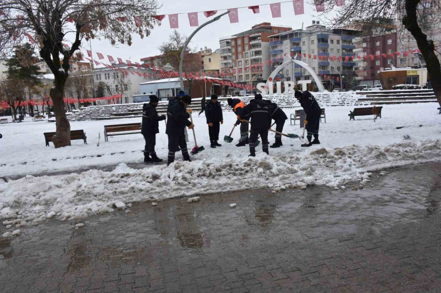 Valilikten yapılan açıklamada, il genelinde etkisini sürdüren yoğun kar yağışı ve olumsuz hava koşulları nedeniyle, vatandaşların can ve mal güvenliğinin sağlanması amacıyla Siirt Belediyesi ekipleri kent merkezinde karla mücadele çalışmalarını aralıksız şekilde sürdüğü belirtildi. Bu kapsamda başta ana arterler olmak üzere cadde ve sokaklarda yol açma, kar küreme, tuzlama ve solüsyon uygulamaları titizlikle yürütülmekte olduğu, ulaşımın güvenli ve kesintisiz şekilde sağlanması için ekiplerin 7 gün 24 saat esasına göre sahada görev yaptığı aktarıldı. Yetkililer, vatandaşların mağduriyet yaşamaması adına çalışmaların planlı ve koordineli bir şekilde devam ettiğini belirterek; zorunlu olmadıkça trafiğe çıkılmaması, trafiğe çıkılması halinde ise araçlarda kış lastiği ve zincir bulundurulmasının önemle rica edildiğini ifade etti.