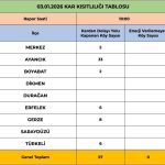 Merkez ilçede kapalı köy yolu sayısı 13’ten 3’e düşerken, Ayancık’ta 71 olan kapalı yol sayısı 41’e indi. Boyabat’ta 7 olan kapalı yol sayısı 2’ye, Dikmen’de 9’dan 3’e, Erfelek’te 32’den 6’ya, Gerze’de 12’den 5’e, Türkeli’nde ise 32’den 6’ya geriledi. Kapanan köy yollarında Sinop İl Özel İdaresi ve Orman Bölge Müdürlüğü ekiplerinin iş makineleriyle yürüttüğü çalışmaların gece boyunca da süreceği bildirildi. Yetkililer, vatandaşların zorunlu olmadıkça yola çıkmamaları ve yapılan uyarıları dikkate almaları gerektiğini belirtti.