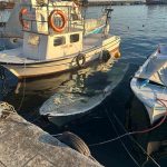 Sinop’ta limanda demirli bir kayık su alarak battı.