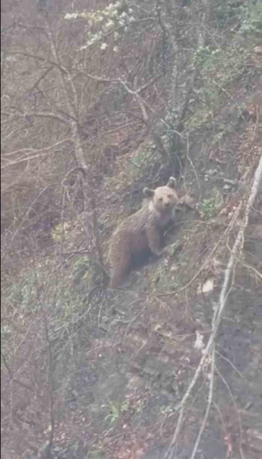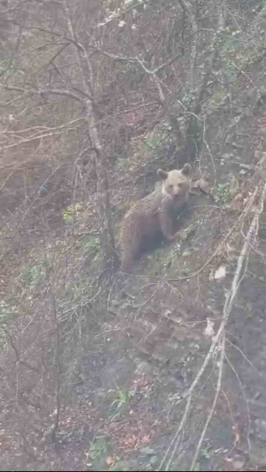Sinop’un Ayancık ilçesi kırsalında ortaya çıkan yavru ayı, yoldan geçen vatandaşlar tarafından cep telefonu kamerasıyla kaydedildi.
