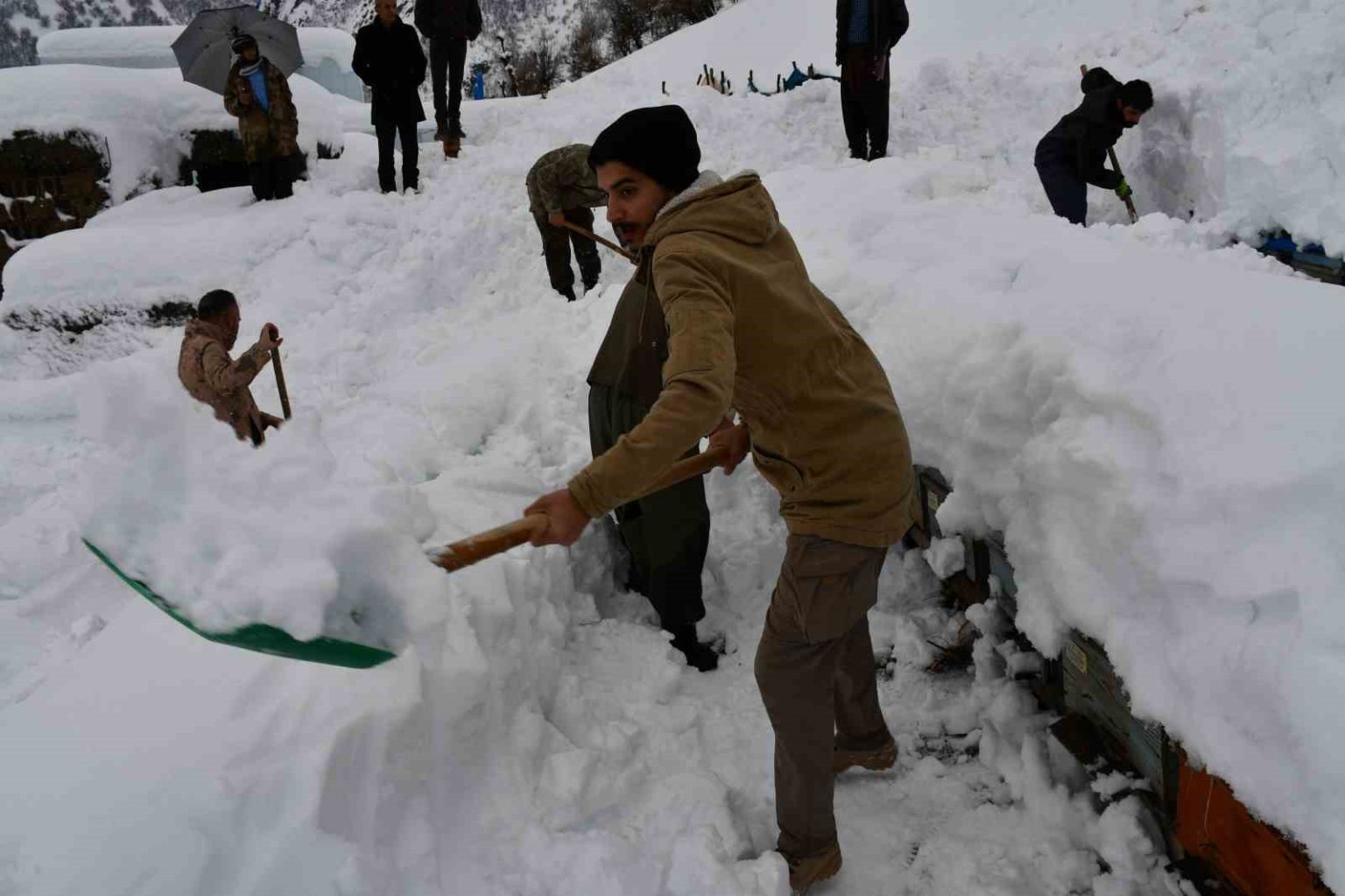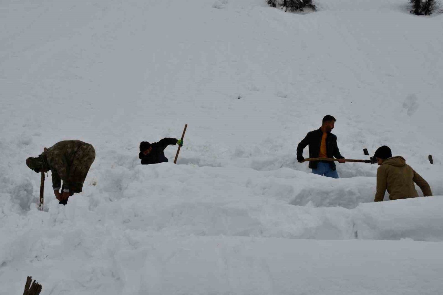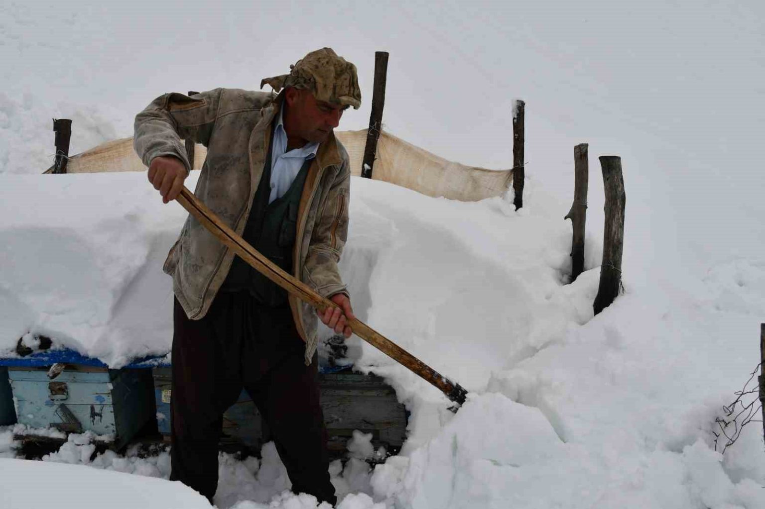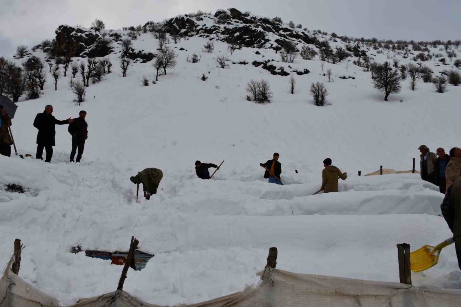 Şırnak’ın Beytüşşebap ilçesinde çığ altında kalan bal arıları, sahibi ve köylüler tarafından çıkartıldı.